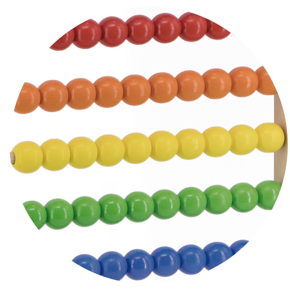 Este ábaco confeccionado en madera de calidad europea tiene una estructura solida y firme que lo hace ideal para utilizarlo tanto en el hogar como en las salas de niños y niñas en centros educativos. De colores vivos. El ábaco es un material didáctico muy útil para la enseñanza de matemáticas en la primera infancia así como también puede utilizarse para reconocer colores y estimular la motricidad fina.