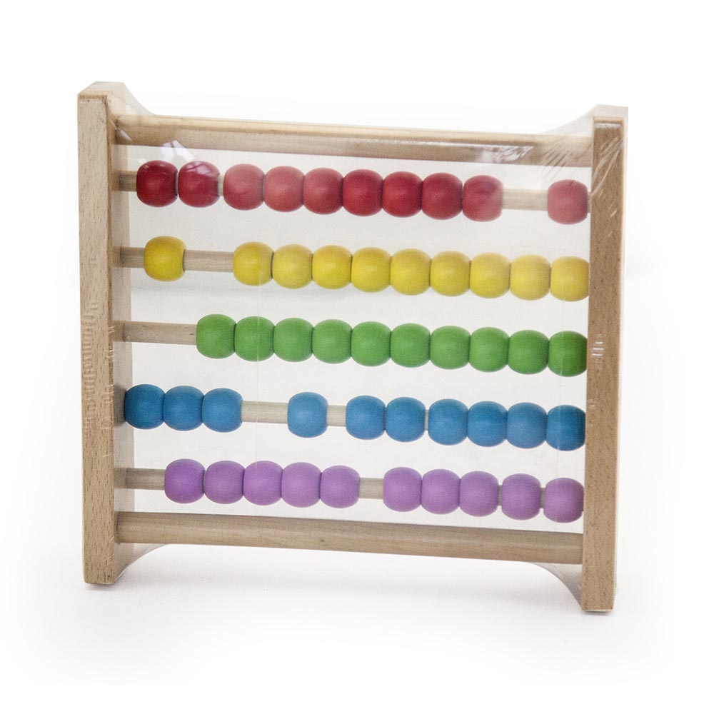 Abaco de madera solida. Muy estable. Con 5 barras de madera con 10 cuentas de colores por barra. De gran calidad y resistencia.