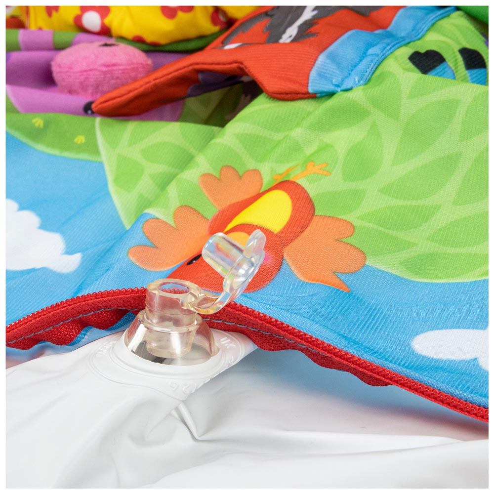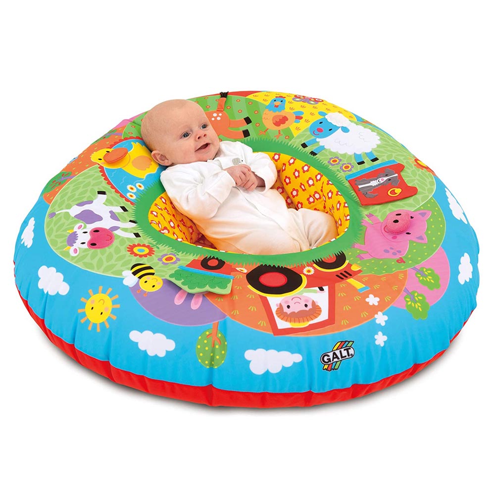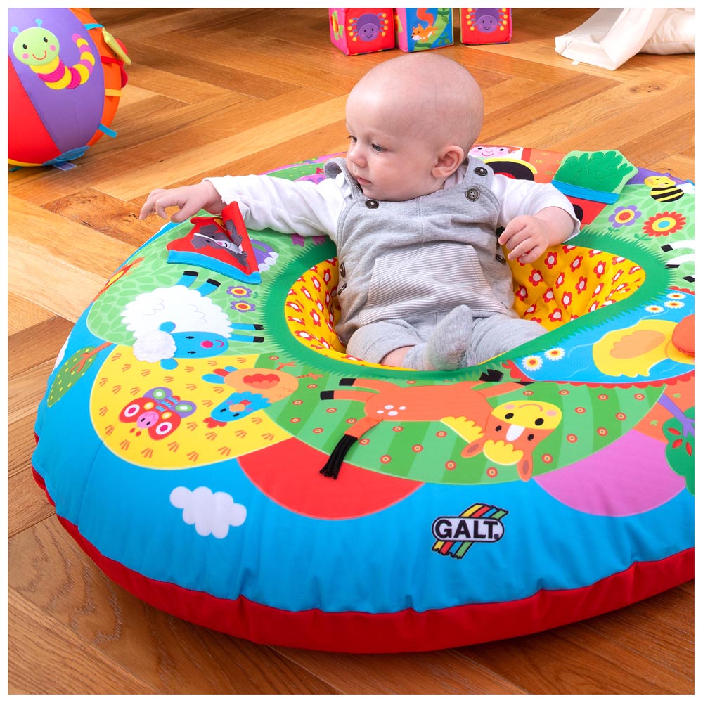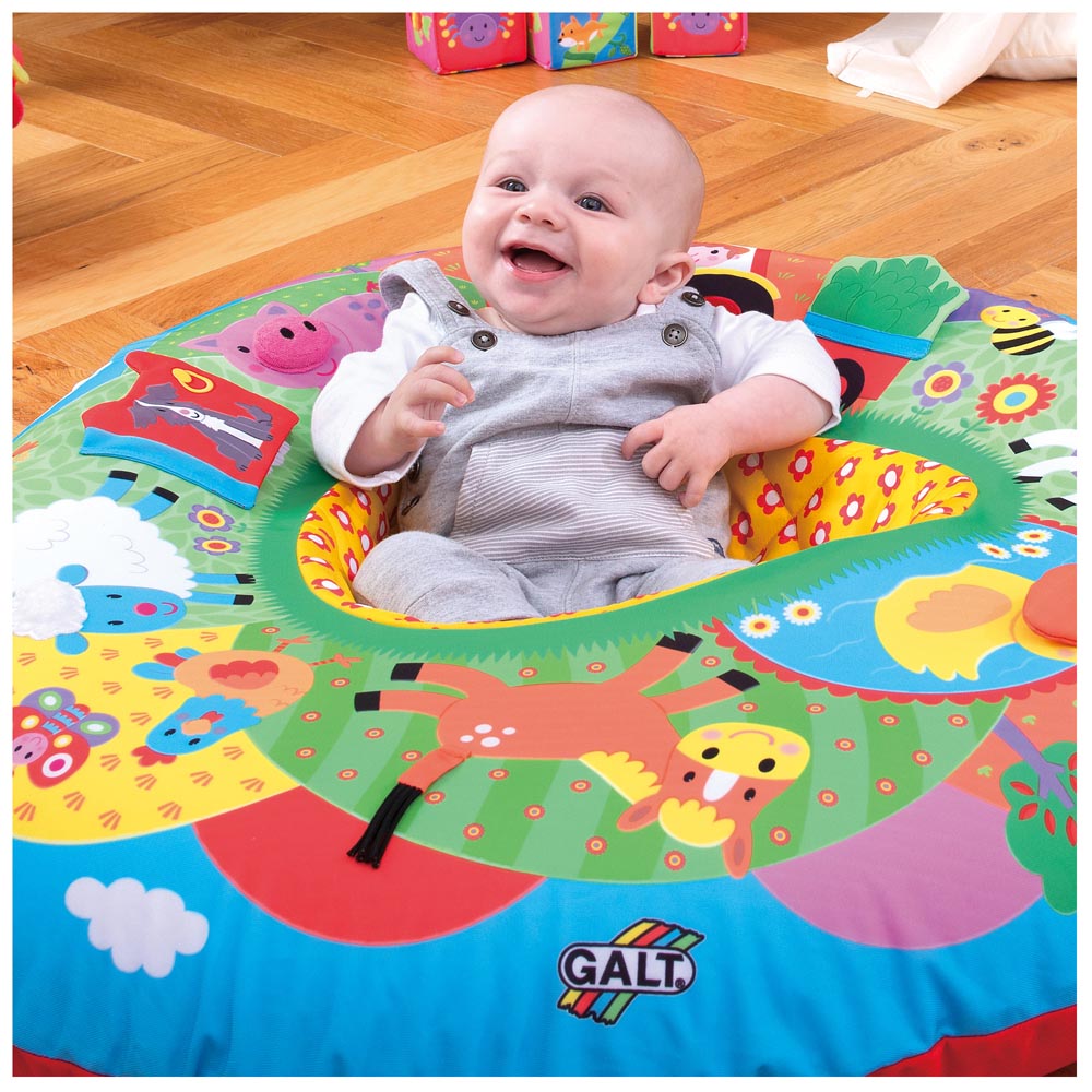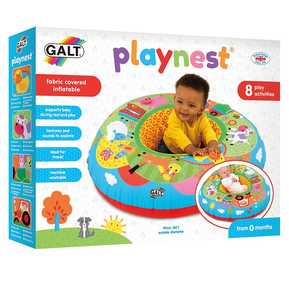 Una combinación única de una zona de descanso suave y un ambiente de juego autónomo para los bebes y niños pequeños. la tela triangular cubre un anillo de PVC inflable que proporciona soporte hacia ambos lados. Posee también 8 características multisensoriales para estimular el tacto, la vista y el oído. Playnest es también un excelente lugar para que el bebe pueda sentarse y jugar con otros juguetes. La funda de tela cuenta con centro de acolchado blando y lavable a maquina. 90 cm diámetro x 70 cm.