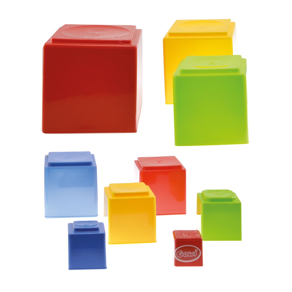 Apilables cuadrados de 9 piezas. Plástico resistente, brillante y de variados colores. Desde 12 meses.