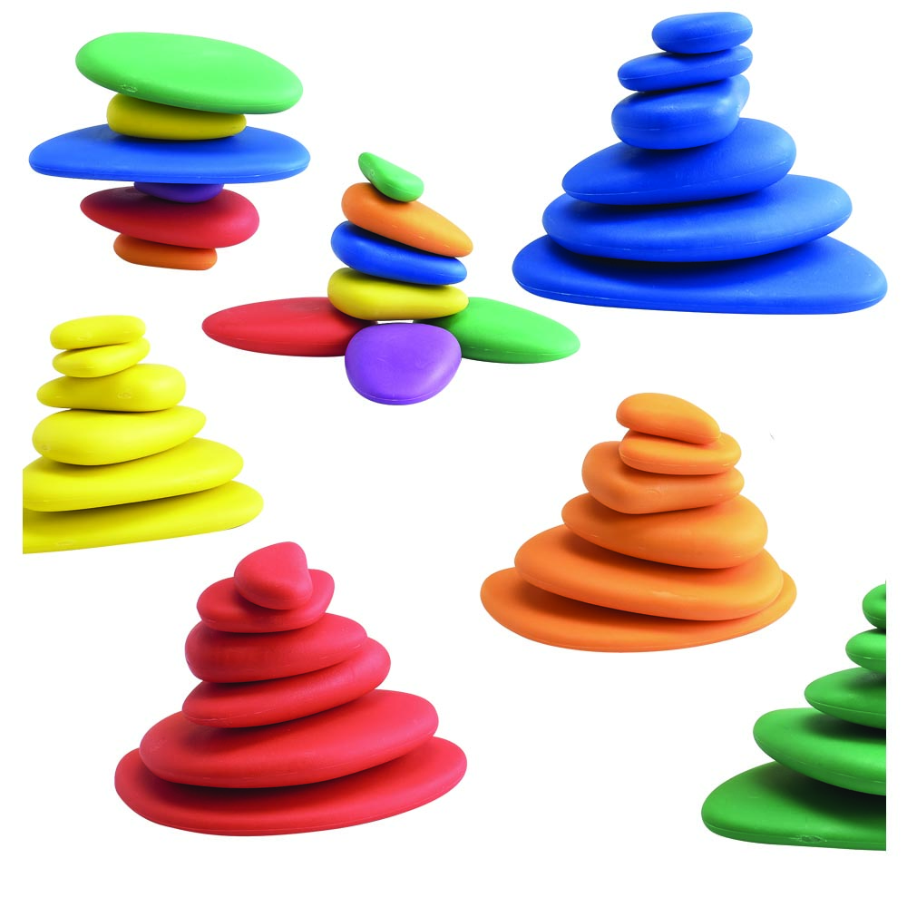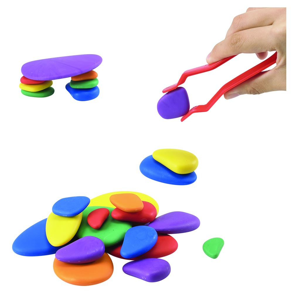 Los niños se divierten mucho con esta manipulación matemática de la construcción. Ideal para desarrollar habilidades motoras finas, y para contar, clasificar y diseño creativo. El juego incluye una caja plástica transparente con 36 piedras en 6 tamaños y 6 colores, mas 20 tarjetas de actividades. Material suave y liviano.