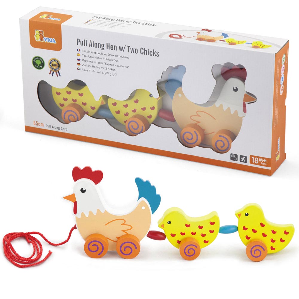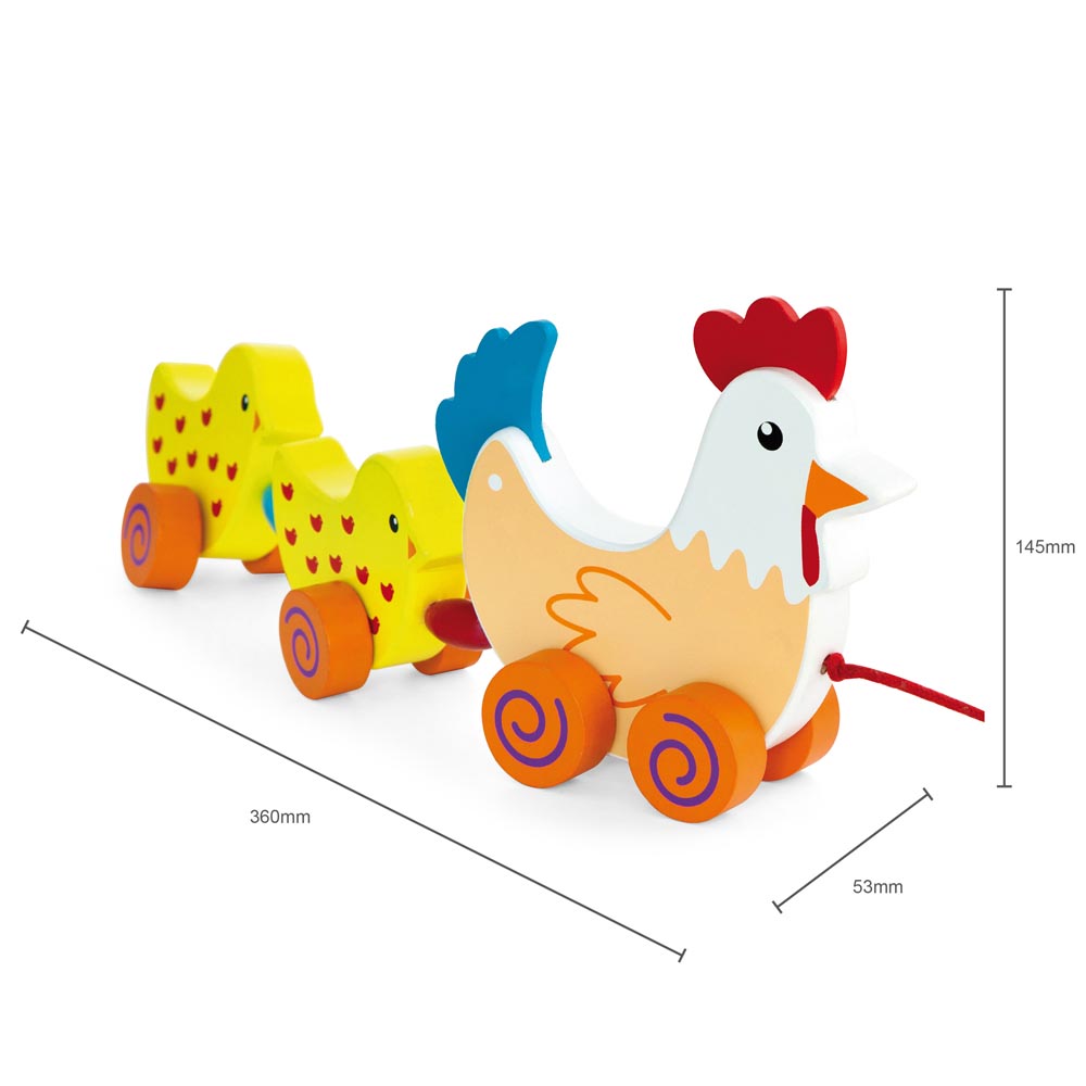 Arrastre donde la madre gallina arrastra a sus dos pollos. Excelente diseño pintado a mano.