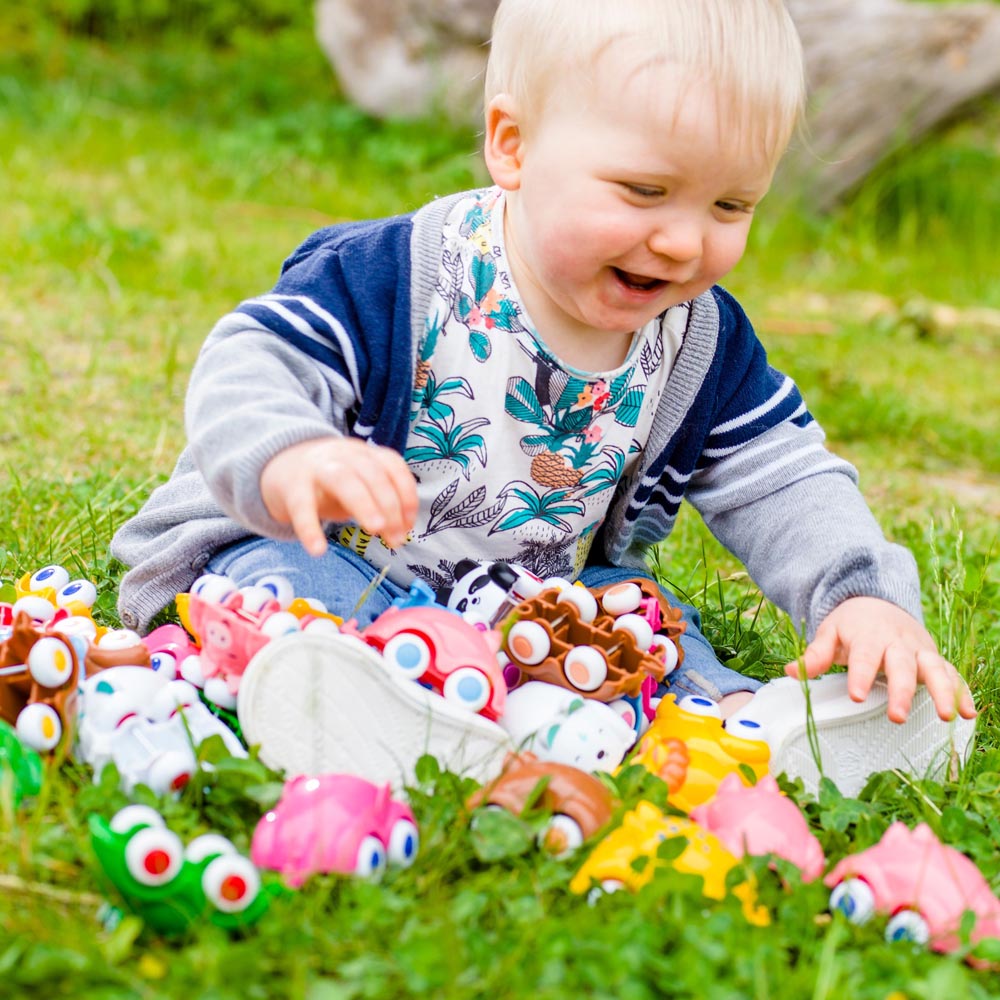 9 modelos de cute cars de 7 cm. De material plástico, irrompible, seguros y de colores fuertes y brillantes. Seguros, suaves, simples, resistentes y silenciosos. Modelos surtidos. Precio por unidad.