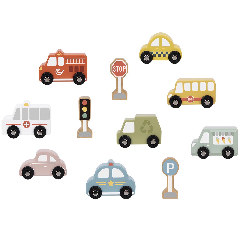 Hermoso set de transportes y señales de tránsito fabricados en madera para pasar horas de diversión. Un juego ideal para estimular el desarrollo de las habilidades sociales de los más pequeños de una forma muy entretenida mientras aprenden las señales del tránsito que serán de gran utilidad en la vida cotidiana. Incluye 8 vehículos diferentes con hermosos diseños y 3 señales de tránsito que vienen en una linda caja de madera con divisiones para ordenarlos como más les guste a los niños y niñas. Camión de helados 8 x 5 x 2 cm. De material suave y resistente y colores suaves.