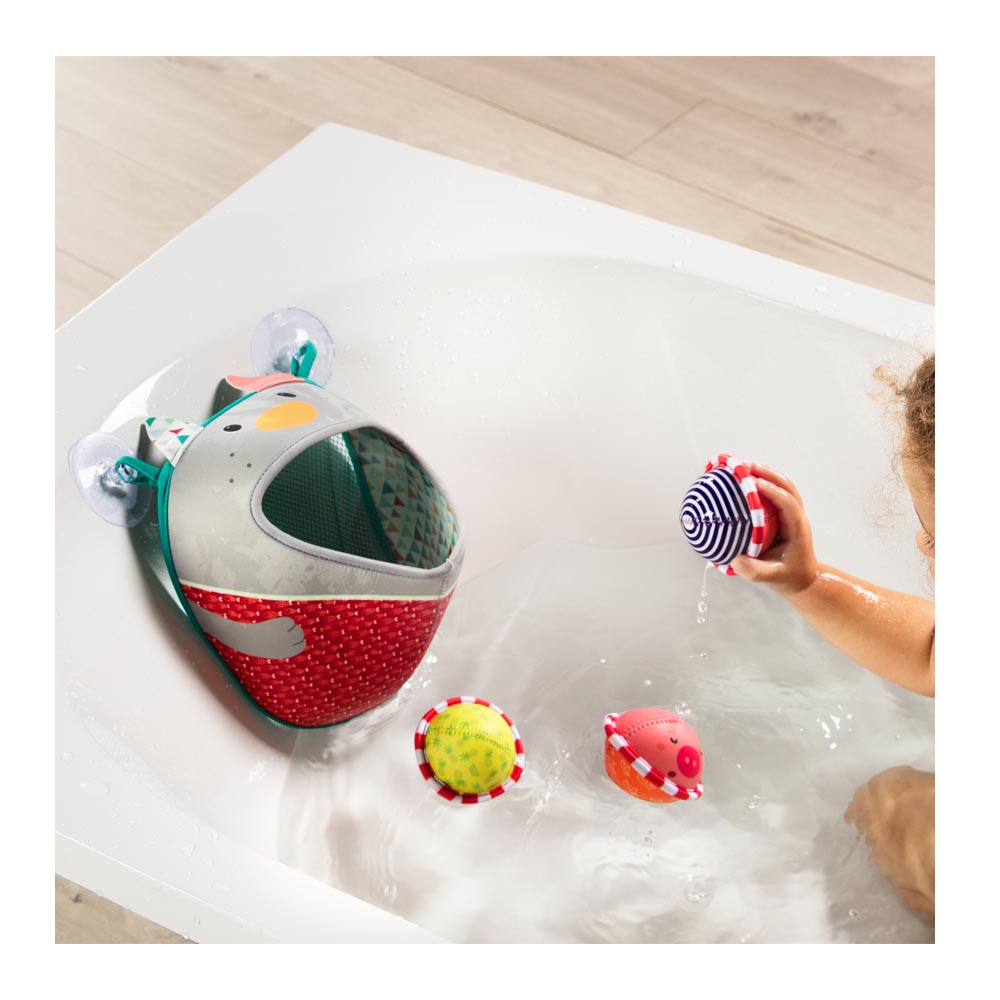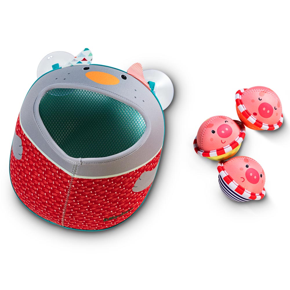 Este juego para el baño es tan versátil. Confeccionado en neopreno lavable, hace que la hora del baño sea aún más divertida. Al pescar a los tres cerditos en el agua y tirarlos a la boca de Nicolas, se estimulan sus habilidades motrices y se mejora su coordinación mano-ojo. Con las ventosas, es muy fácil poner a Nicolas en las paredes del baño para jugar de mil maneras.