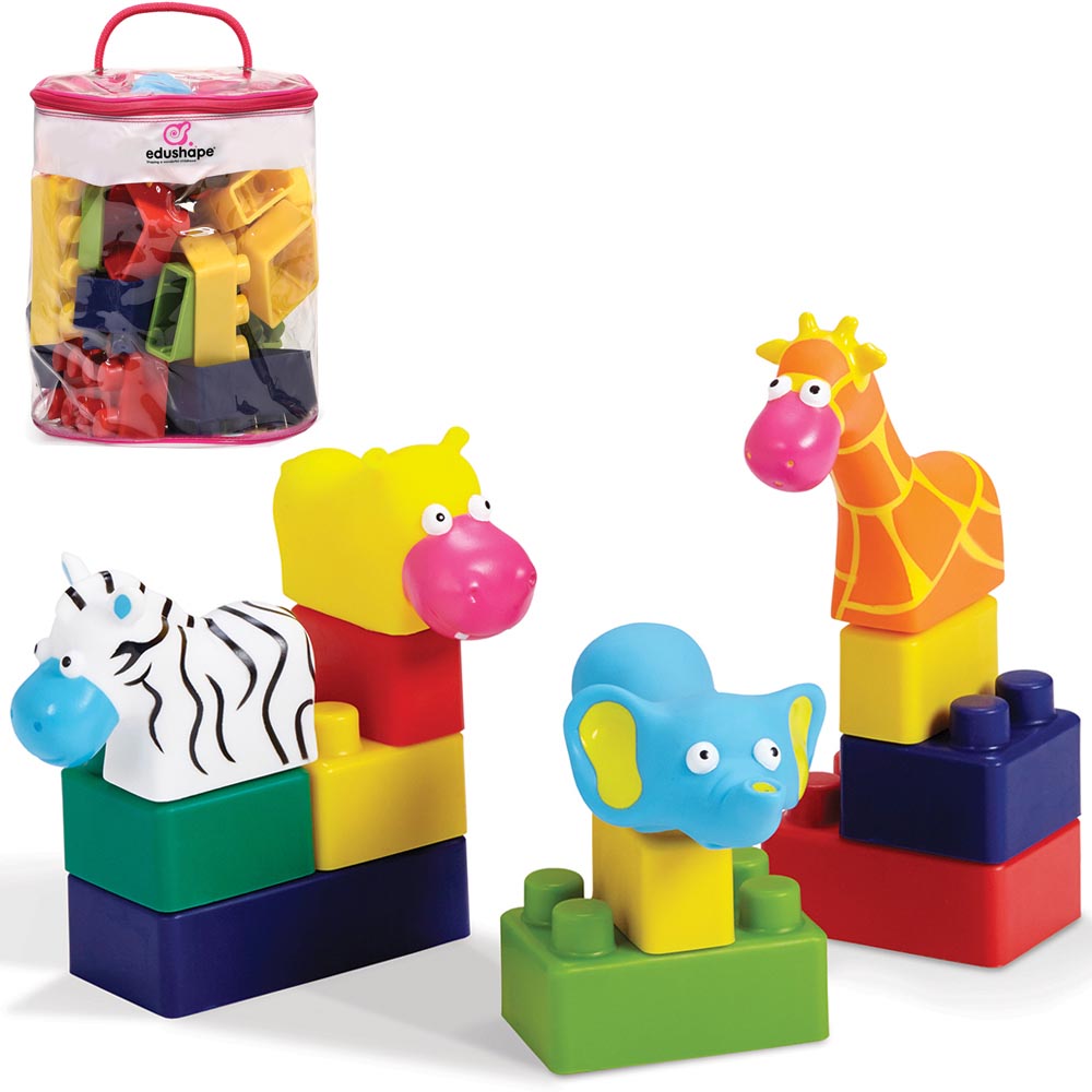 Para los fanáticos de los animales una combinación de bloques y trenes para armar, y animales que también encajan en las otras piezas. Los niños adorarán la combinación de construcción y animales divertidos. Incluye 28 piezas de colores variados.