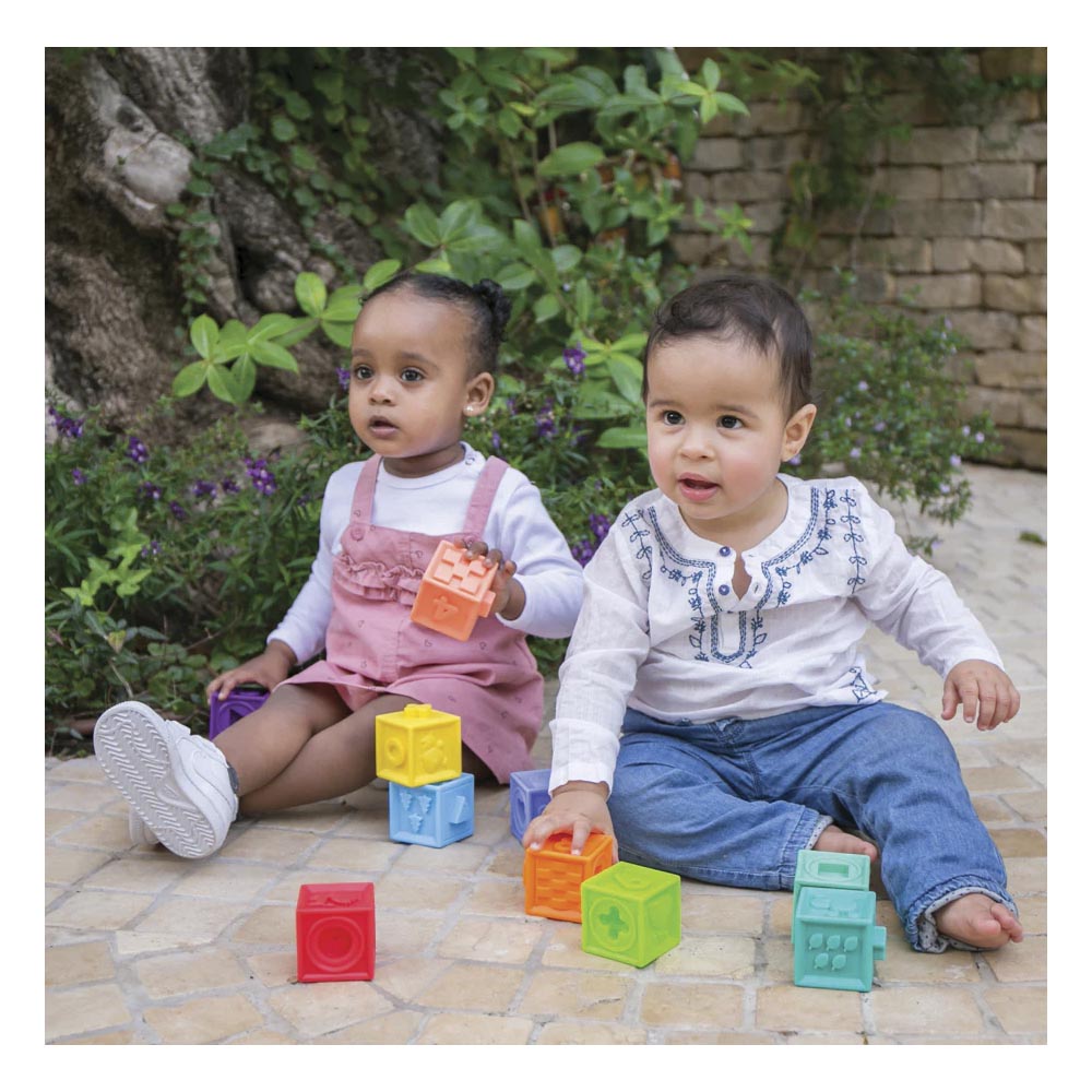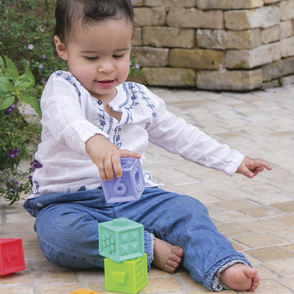 Divertido juego de bloques texturados para enseñar a los más pequeños los números, colores y formas de una forma muy entretenida. Incluye 10 bloques con los que los niños y niñas pueden construir y crear todo lo que imaginen. Un juego que desarrolla tanto las habilidades motoras como las habilidades cognitivas. Fabricado en material suave y resistente.