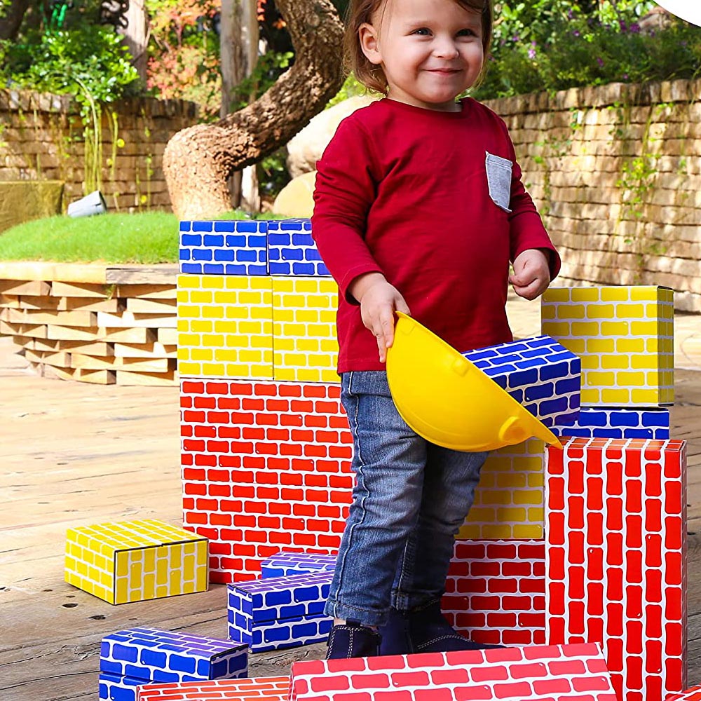 Fuertes cajas de cartón durable y livianos en forma de ladrillos. Puede soportar hasta 45 kilos. Los ladrillos son entre (7,5 x 7,5 x 15 cm hasta 7,5 x 15 x 30 cm) montaje requerido. Extra resistente.