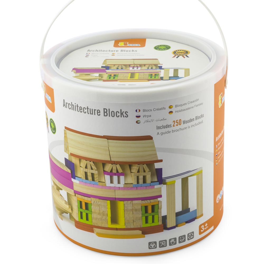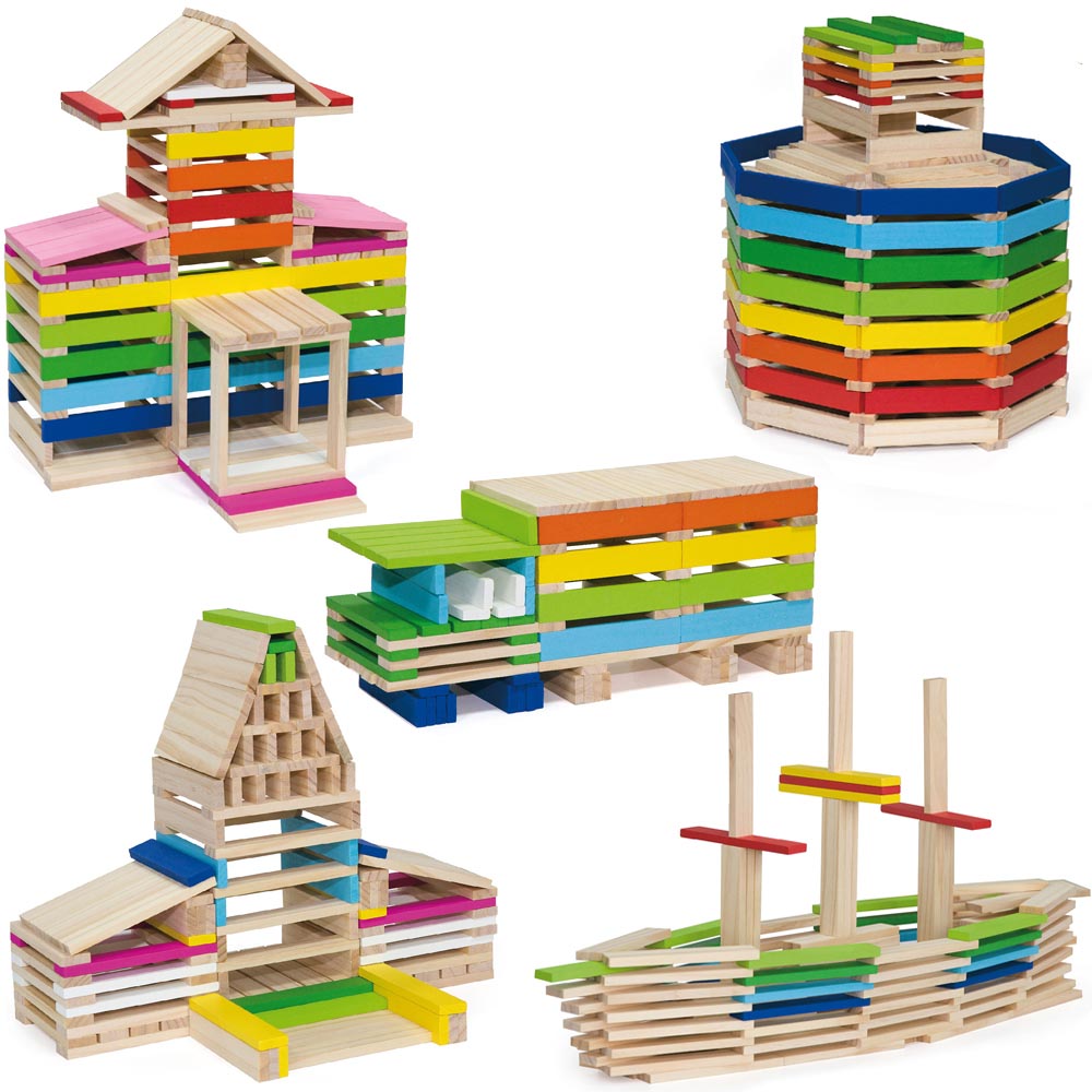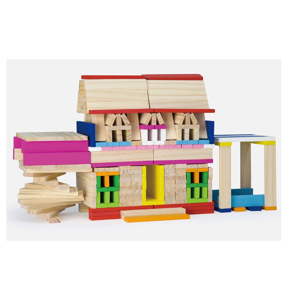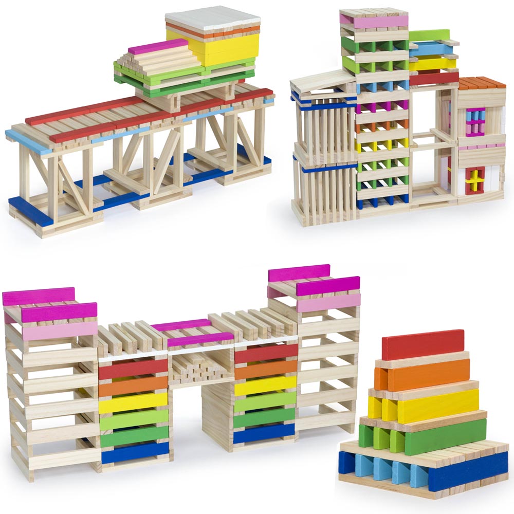 Set de 250 pz de madera con 150 pz de bloques de madera natural y 100 pz de madera de colores. Juego educativo para construir y fomentar las habilidades de coordinación mano-ojo de los niños.