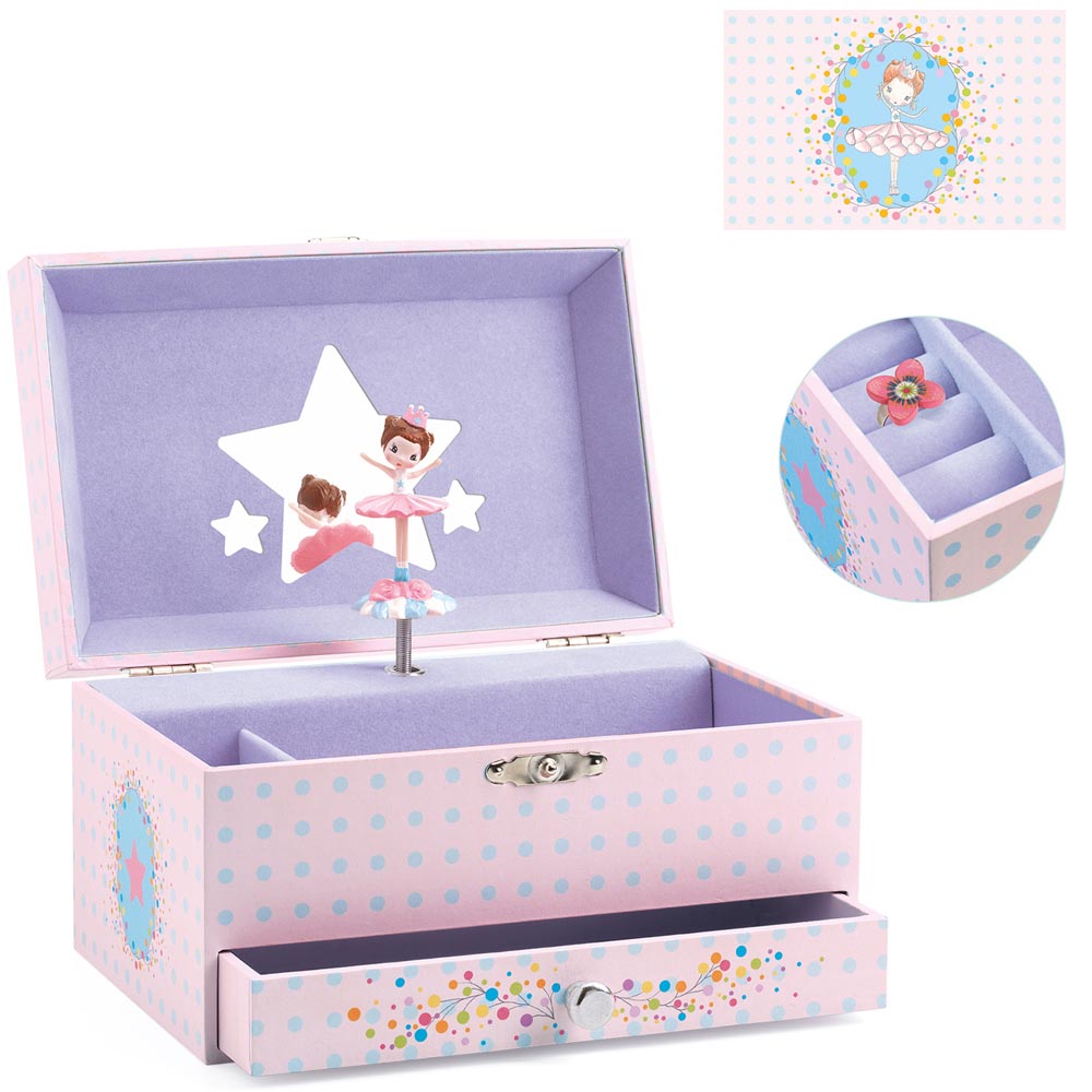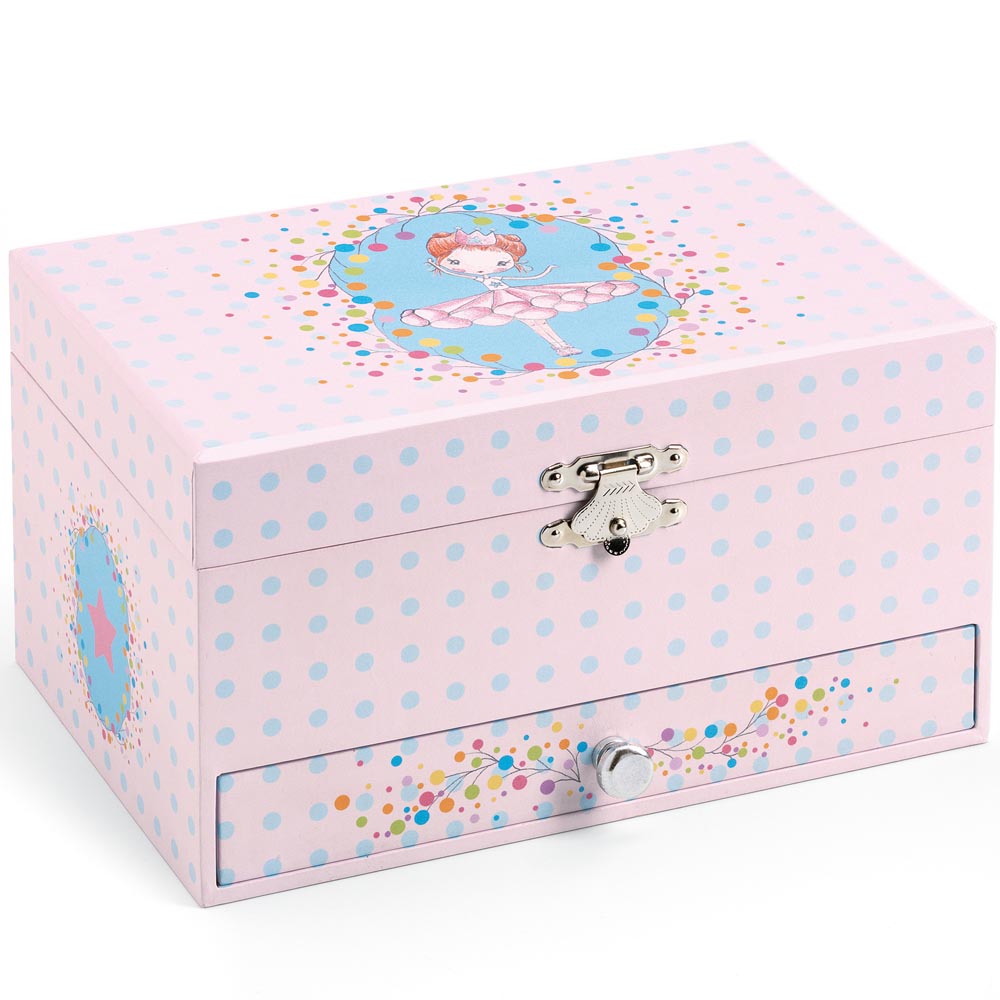 Preciosa cajita musical con cajoncito para guardar tesoros. Precioso diseña y dulce melodía.