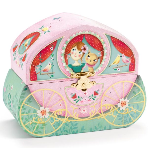 Hermosa caja musical con ilustraciones de colores vivos y maravillosos detalles. Con música de Antoine Renard. Fabricada en madera de alta calidad.