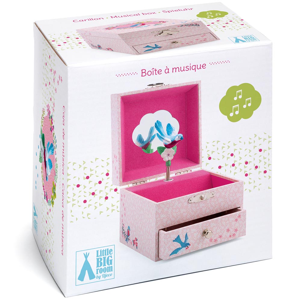 Preciosa cajita musical con cajoncito para guardar tesoros. Precioso diseña y dulce melodía.