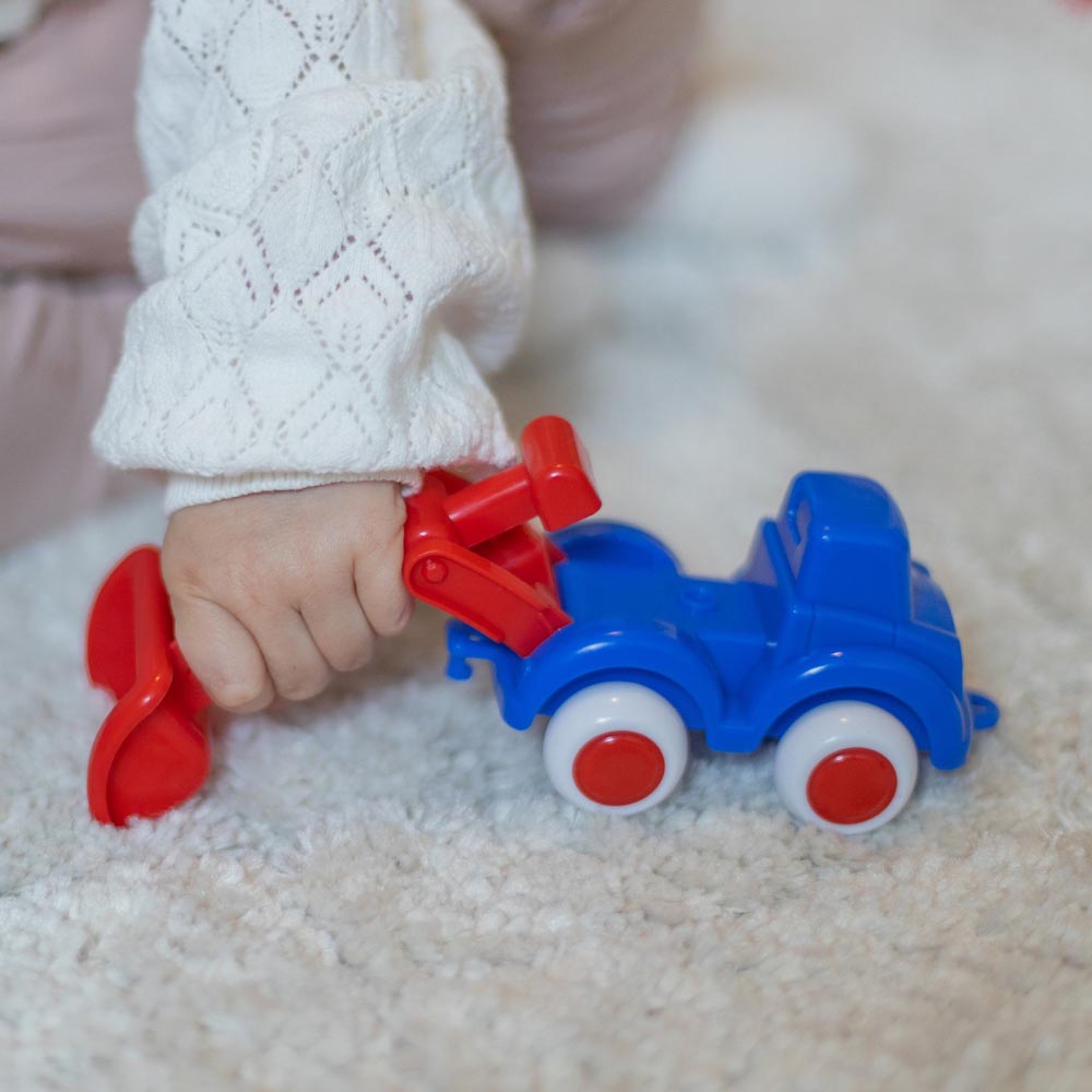 Camión Pala de 14 cm. De material plástico, irrompible, seguros y de colores fuertes y brillantes. Seguros, suaves, simples, resistentes y silenciosos.