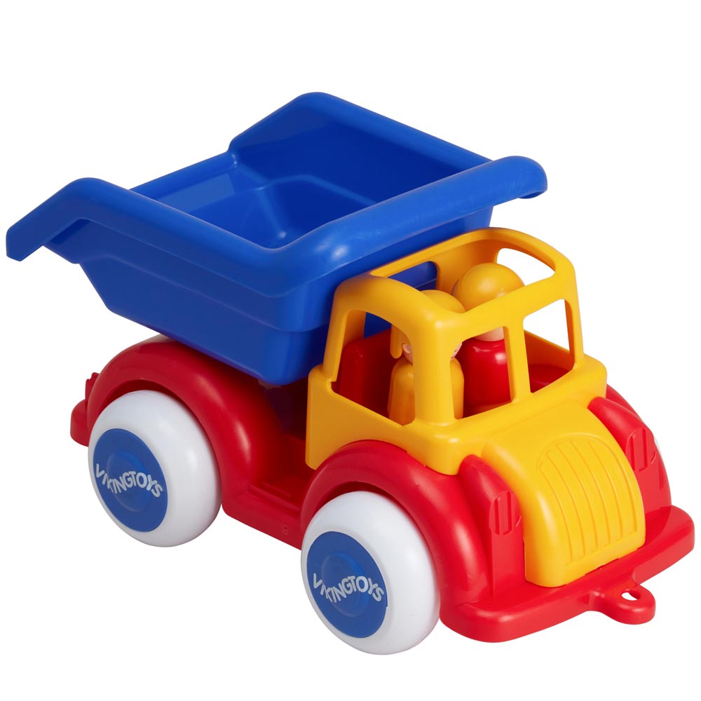 Camión tolva de 25 cm de plástico irrompible, con dos figuras. Las ruedas de goma giran con facilidad, tienen ejes firmes y no se salen. Sus bordes son suaves y redondeados sin filos, por lo que son seguros para párvulos. De material resistente, irrompible. De excelente diseño y brillantes, vivos y variados colores. No toxico. Seguros, suaves, simples, resistentes y silenciosos.