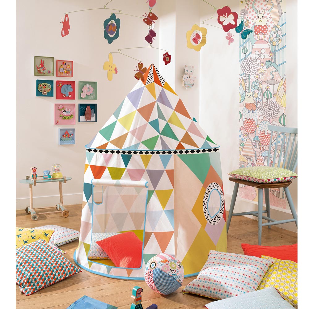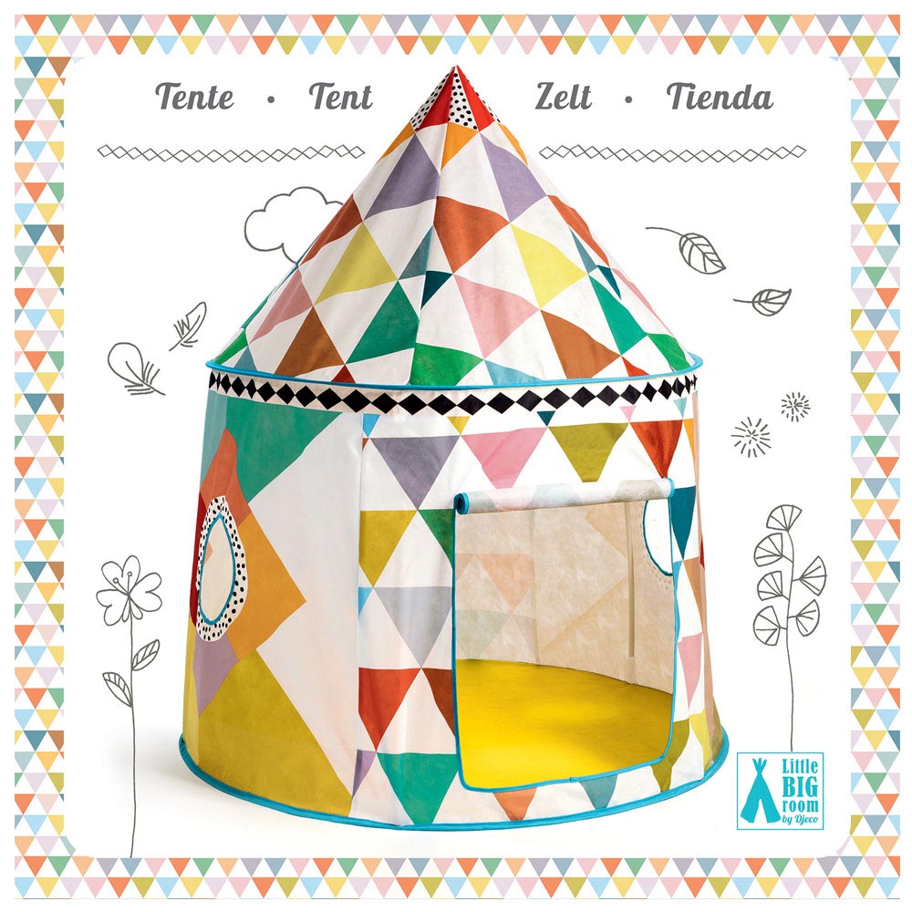 Hermosa casa de juegos de tela, espaciosa para pasar horas jugando con amigos o tomar un momento de lectura en soledad. Modelo multicoloreado con pequeñas ventanitas. Fácil de armar y limpiar. 130 x 106 cm carpa armada