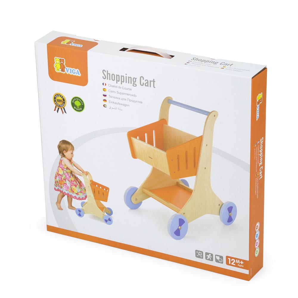 Carro supermercado de madera de alta calidad. Seguro para utilizar como andador y para recolectar las compras. Con goma en las ruedas.