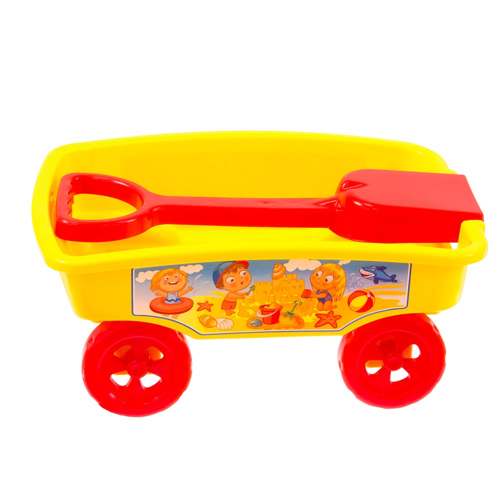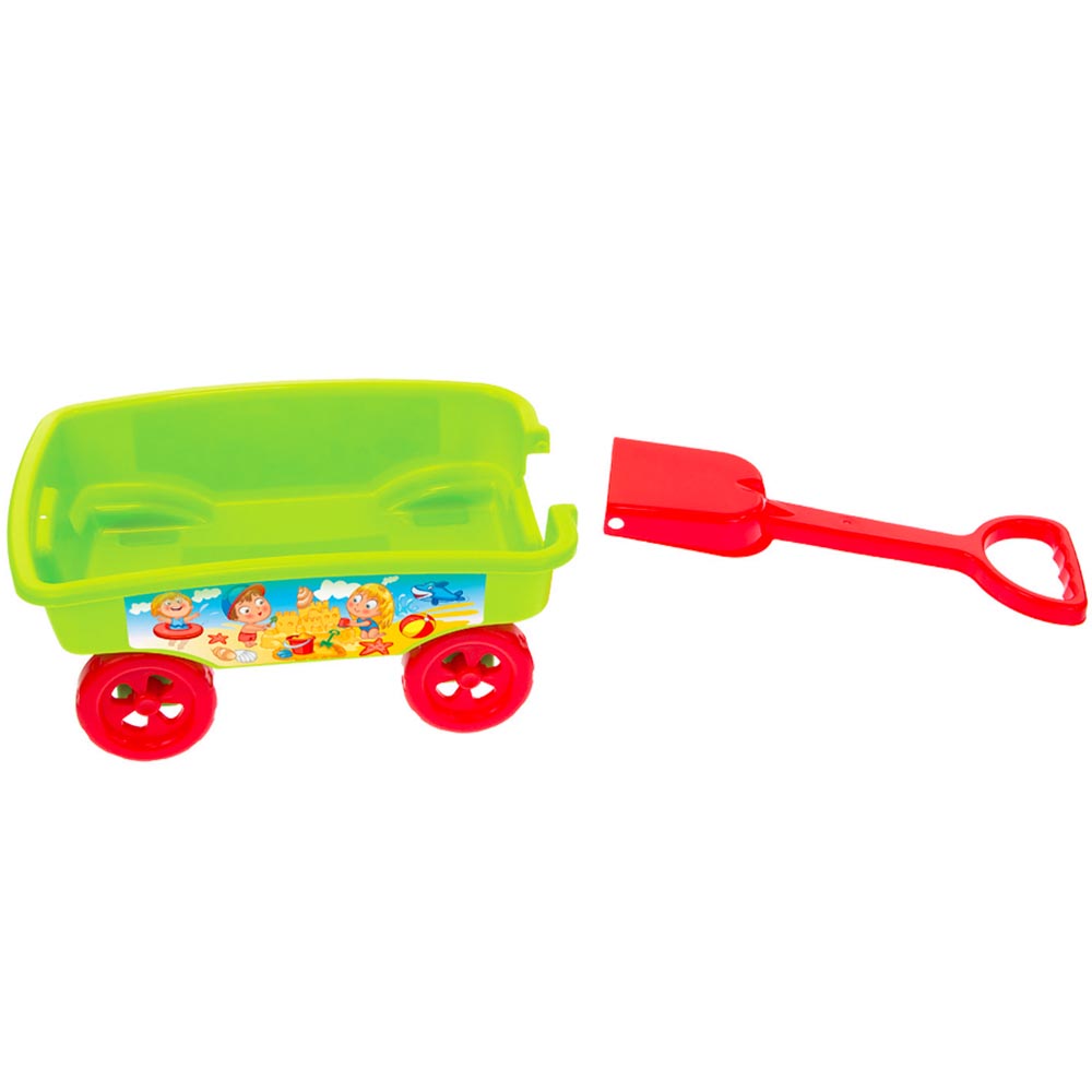 Carro plástico con 4 ruedas y con tirador de pala que se saca con facilidad. De gran calidad y resistencia.