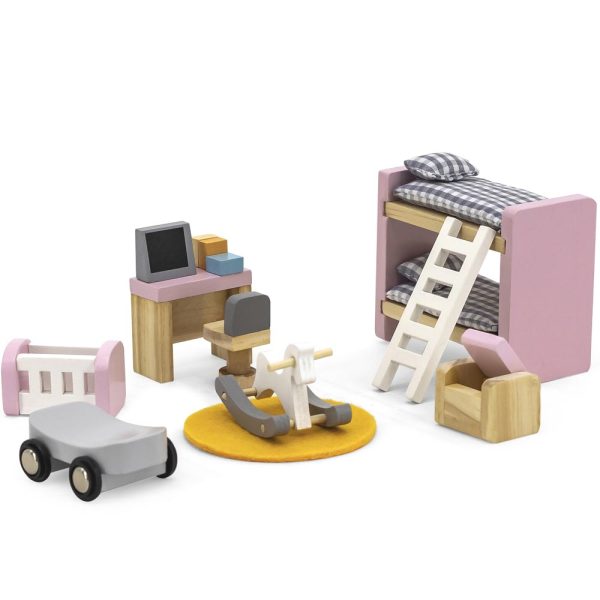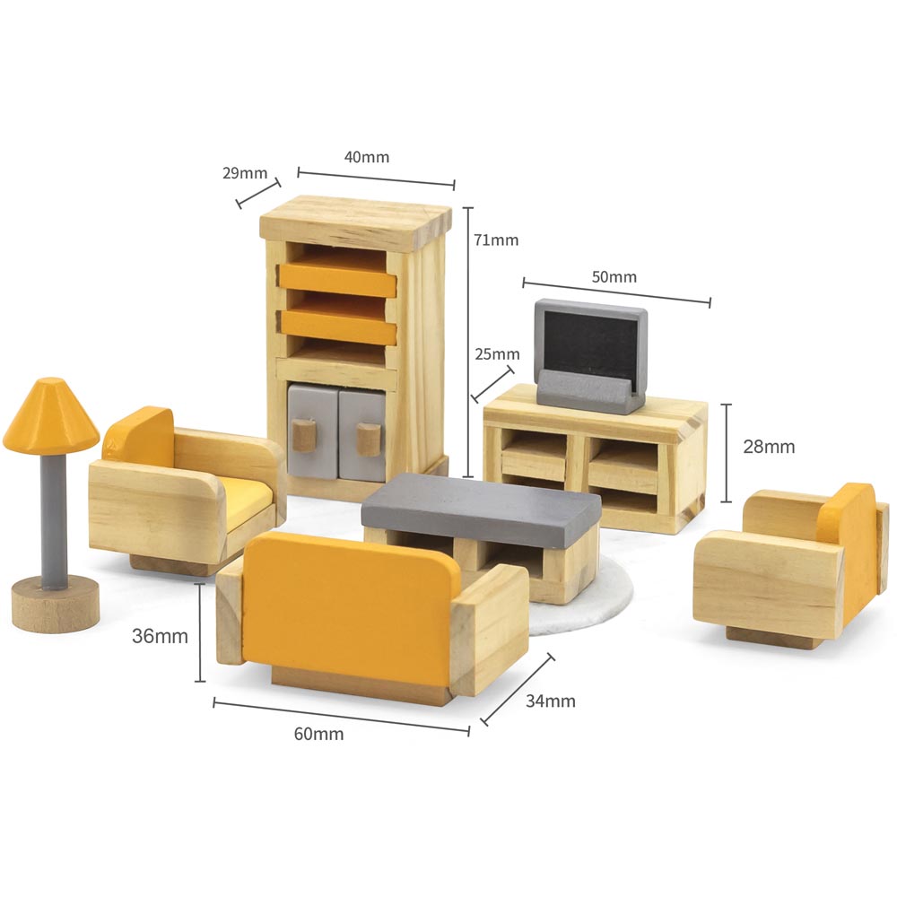 Hermoso set de accesorios para casas de muñecas fabricado en madera, de material suave y resistente y colores suaves. Un accesorio ideal para estimular el juego de rol con el cual los niños y niñas desarrollan sus habilidades sociales y comunican sus emociones de una forma espontánea y muy entretenida.