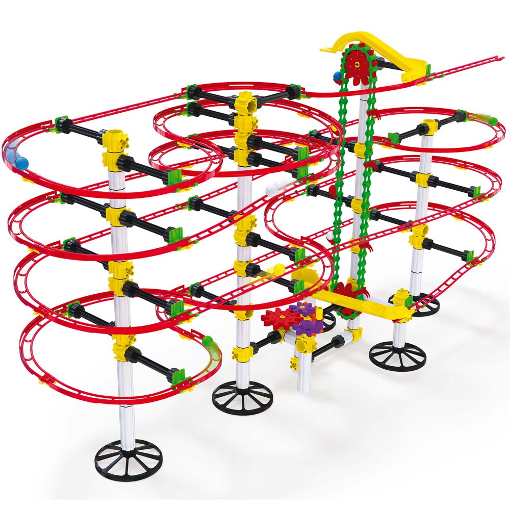 Circuito de 360 pz donde puedes construir fantásticas pistas suspendidas de hasta 12 metros de espectacular desarrollo aéreo. Todos los elementos están cuidadosamente diseñados para que puedas usar las 10 bolitas. Entretenido juego que permite realizar observaciones, experimentos y descubrimientos interesantes en el mundo de la física.