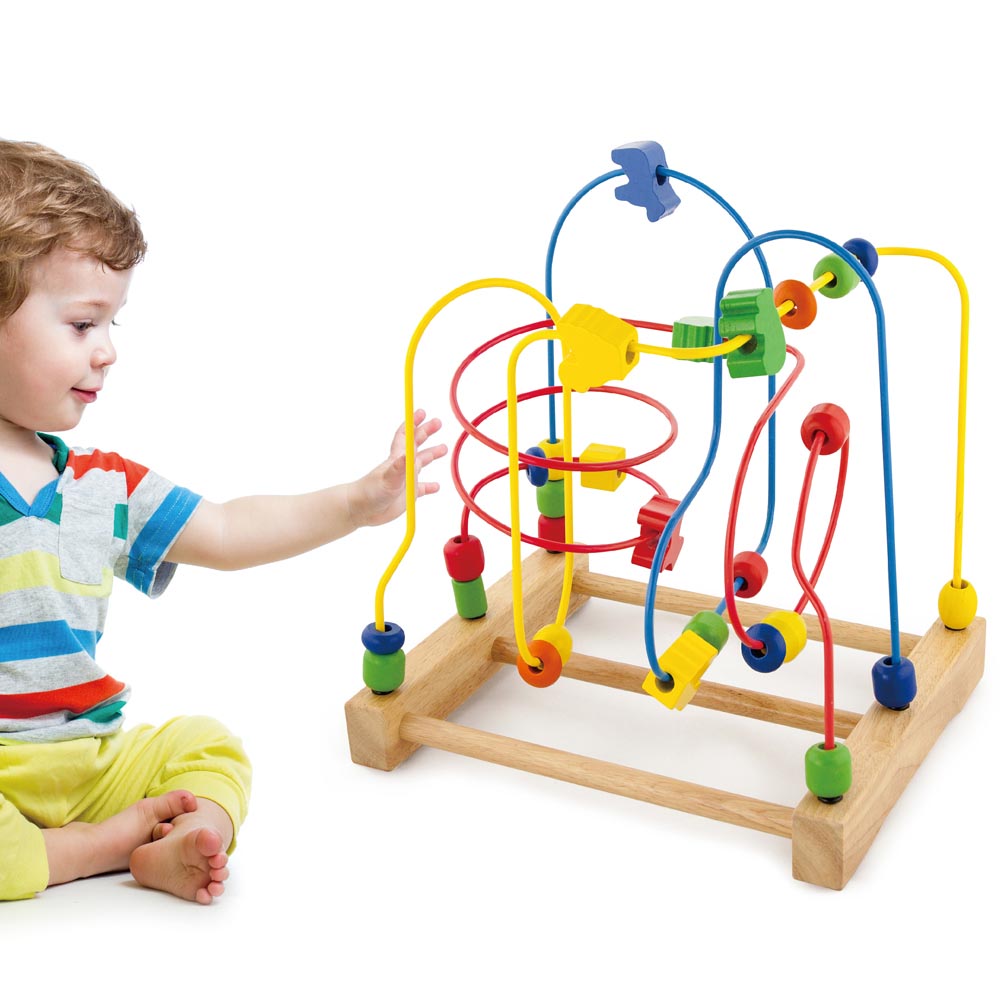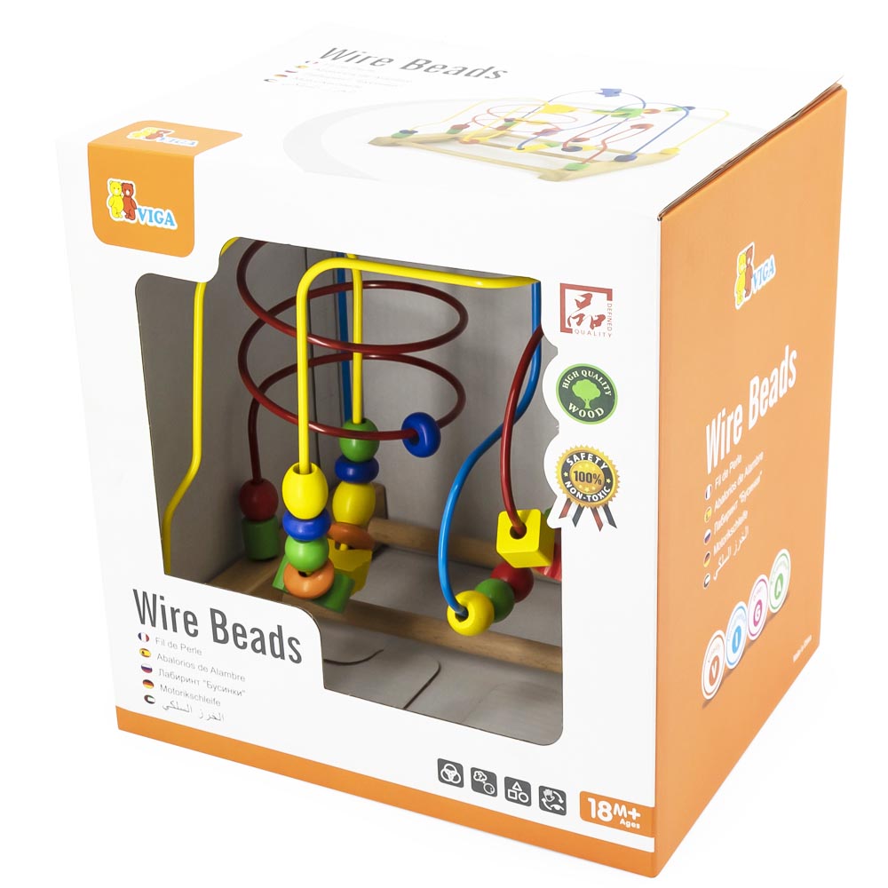 Circuito de motricidad que enseña la discriminación de formas y colores, el desarrollo de la motricidad fina, el desarrollo de la orientación espacial. Con cuentas de madera de diferentes colores. De gran calidad y diseño.