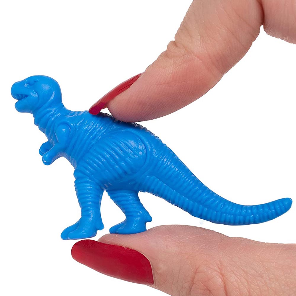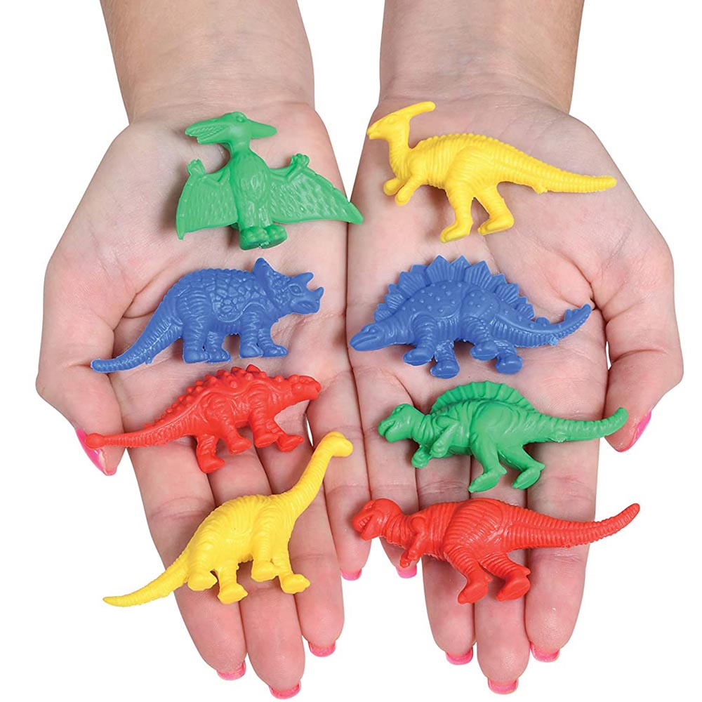 Caja transparente con 128 animales (dinosaurios) de goma de 8 tipos diferentes y en 6 colores distintos. Ideales para desarrollar habilidades matemáticas. Excelente calidad. 5 cm aprox c/u.