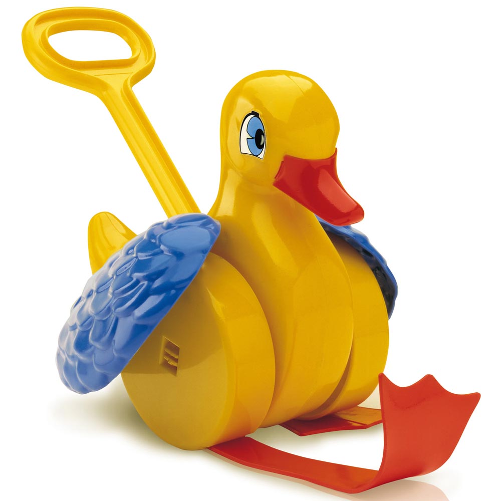 El pato quack y sus aletas, es un compañero lindo para los primeros paseos de su bebe. Al empujarlo, hace batir sus alas de arriba abajo y hace un quack quack quack feliz.