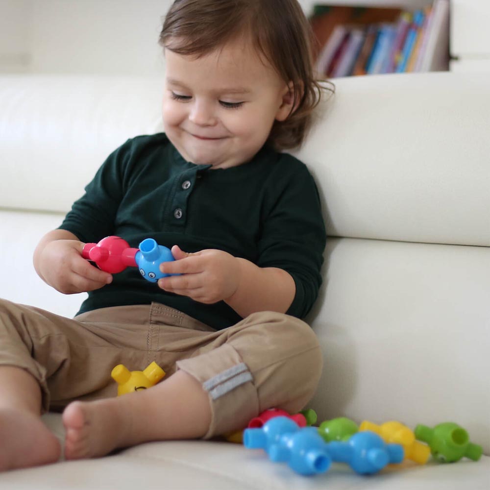 Suaves y flexibles 12 conectables con caras felices. Ideales para jugar y construir usando la imaginación y la motricidad fina de los más pequeños. Al ser flexible es un gran material para los juegos de construcción de los mas pequeños. Cada carita de encaje mide 7 x 7 x 5 cm.