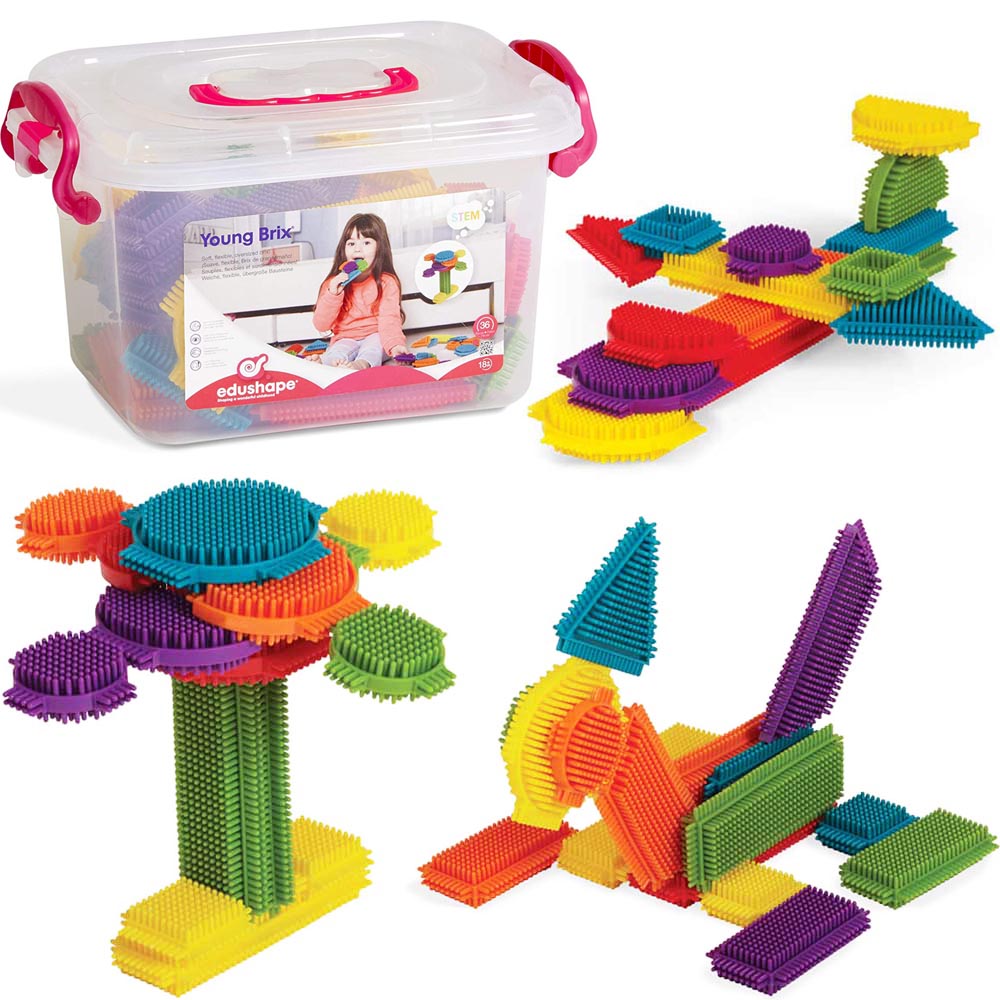 Juego de construccion 36 pz para que los jovenes arquitectos puedan mejorar su creatividad desde una temprana edad. piezas suaves, flexibles y de gran tamaño son ideales para un juego abierto y constructivo. son ideales para las manos pequeñas. 9 formas diferentes, que incluye triangulos, circulos, trapecios y mas.