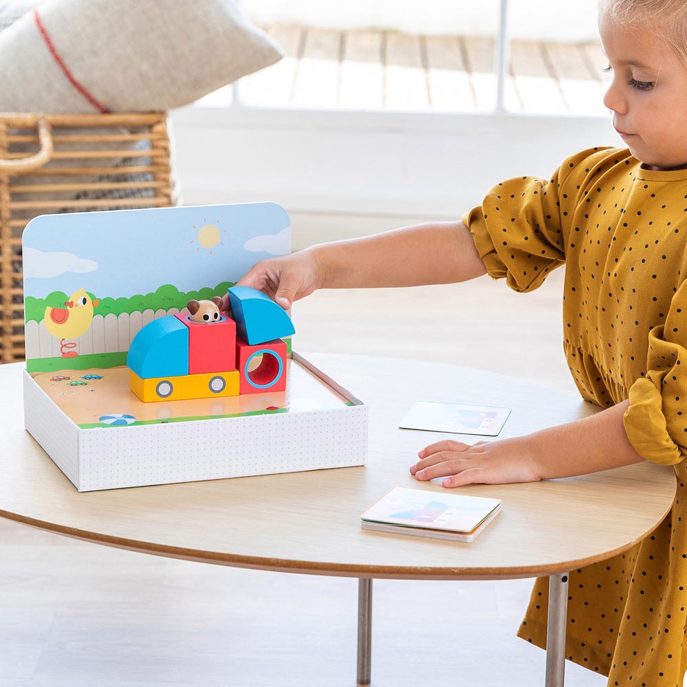 Divertido juego educativo preescolar y de lógica en el que se debe construir correctamente el parque que se muestra en las cartas con las piezas de madera. El juego contiene 3 niveles de dificultad progresiva y se puede jugar solo o con más niños: juego en solitario (1 jugador): los pequeños tendrán que colocar las piezas tal y como indica la tarjeta. Juego competitivo (de 2 o más jugadores): hay que ser el primero en resolver 5 cartas. Logic Park forma parte de la colección Brain Games. Esta colección presenta una gama de juegos para desarrollar el razonamiento lógico con retos de dificultad progresiva para que los niños y niñas aprendan a su ritmo. Estimula el desarrollo de la percepción visual, la orientación espacial y el razonamiento lógico. Edad recomendada: a partir de 3 años. la caja incluye: base de la caja y escenario, 6 piezas de madera, 30 cartas desafío.