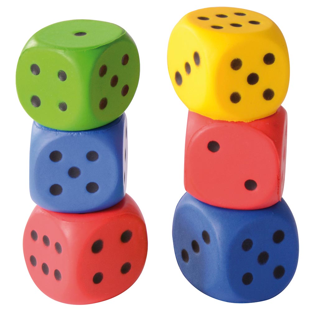 Divertido dado de goma Eva de colores vivos para integrar a todos los juegos que los niños y niñas quieran jugar. De material suave y resistente y colores vivos. Colores surtidos. Precio por unidad.