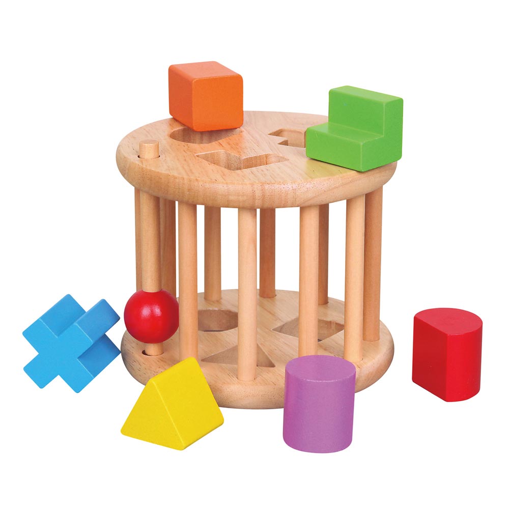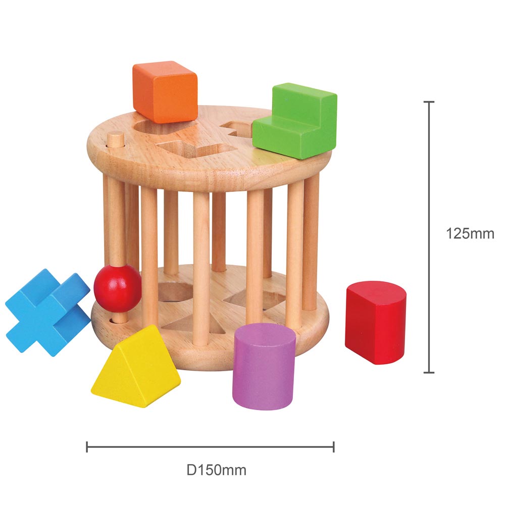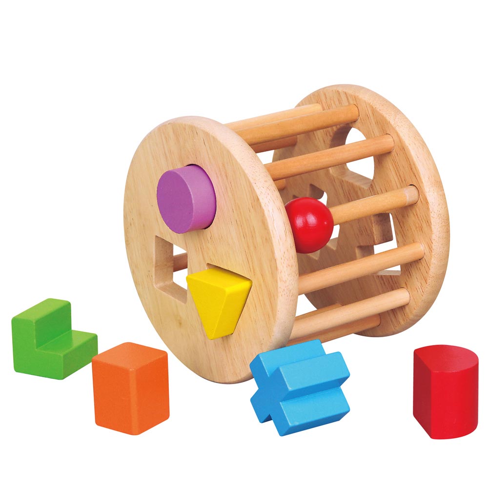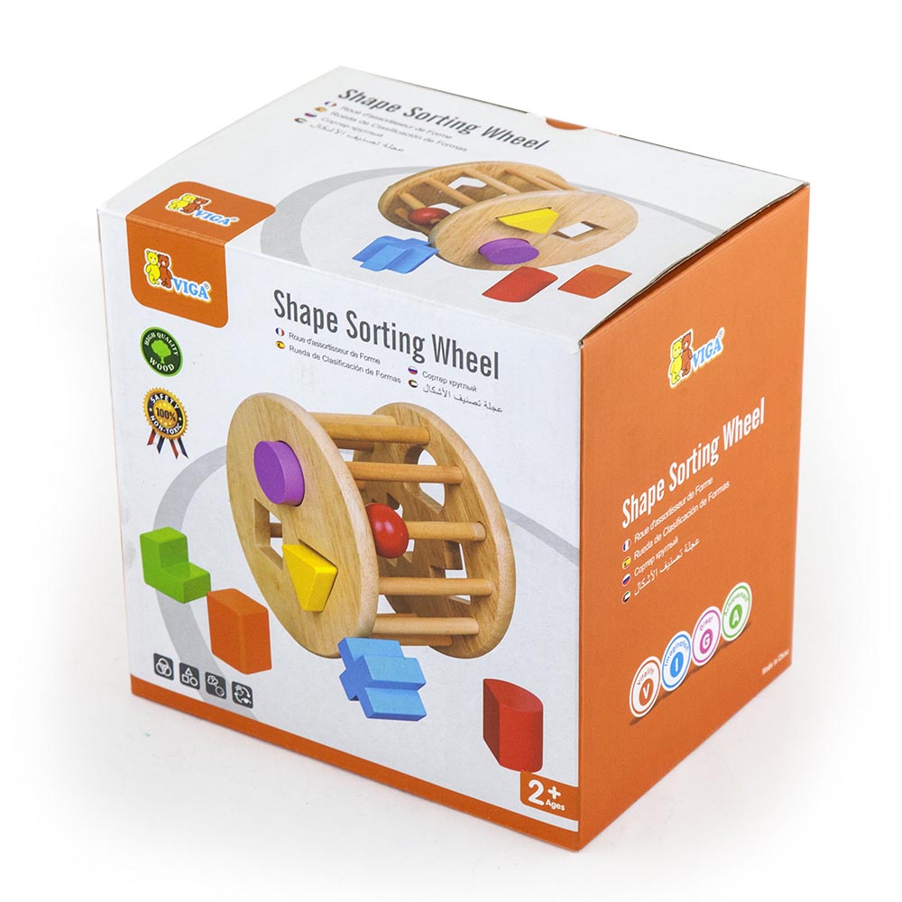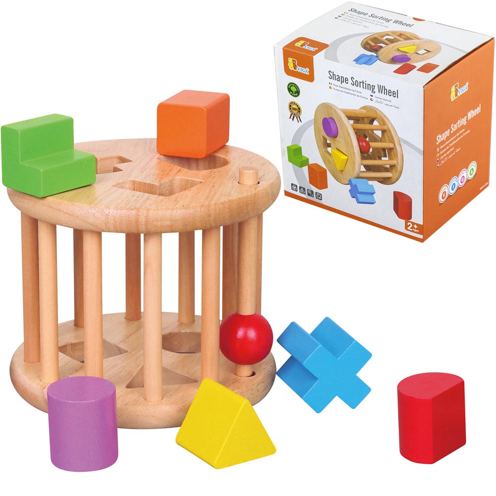 Rueda de encaje de madera con 6 formas geométricas de madera pintadas para encajar. De gran diseño y calidad. Medida rueda 13 x 14,5 cm diámetro.