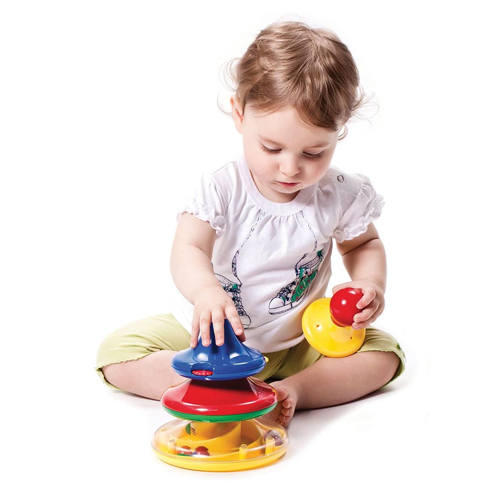 Un juguete de apilamiento para las manos mas pequeñas. Cada parte tiene una actividad o función diferente para dar mas entretención al jugar. Los colores puedan variar.