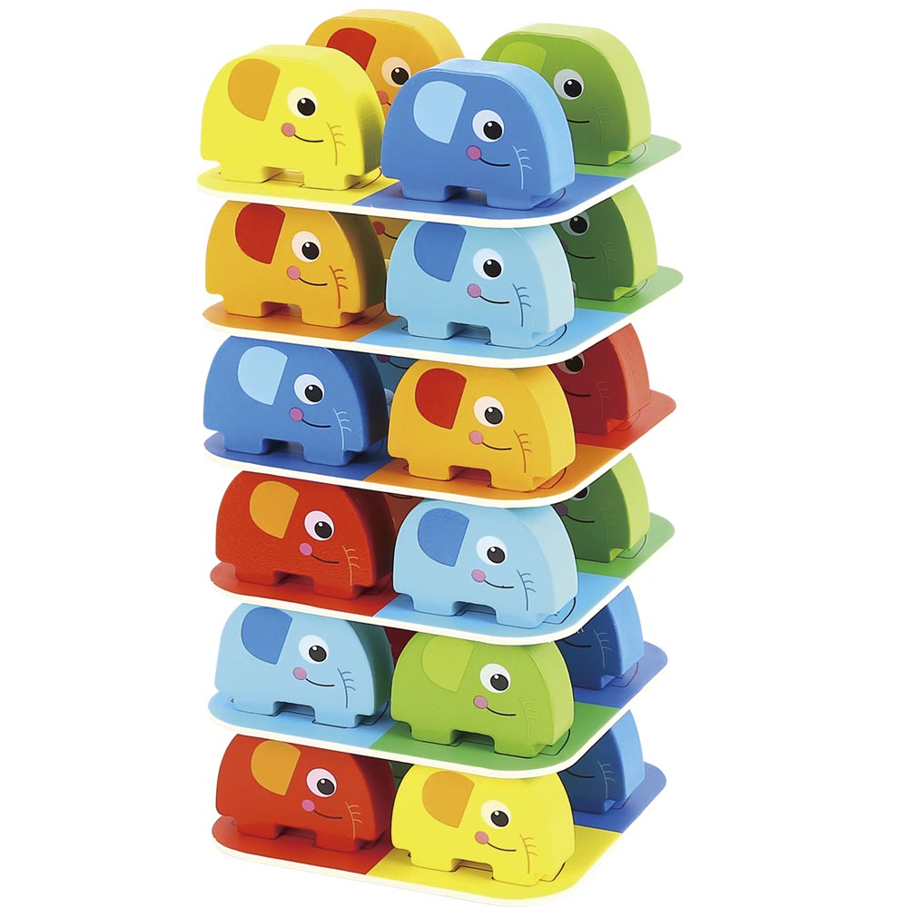 Divertido juego de construcción fabricado en madera con estos hermosos elefantes que serán muy atractivos para los más pequeños. Esta torre apilable es un juego versátil de excelente calidad diseñado para estimular el desarrollo de las habilidades motoras finas, la coordinación mano-ojo, la comprensión de peso y equilibrio y el pensamiento lógico. De material suave y resistente y colores vivos.