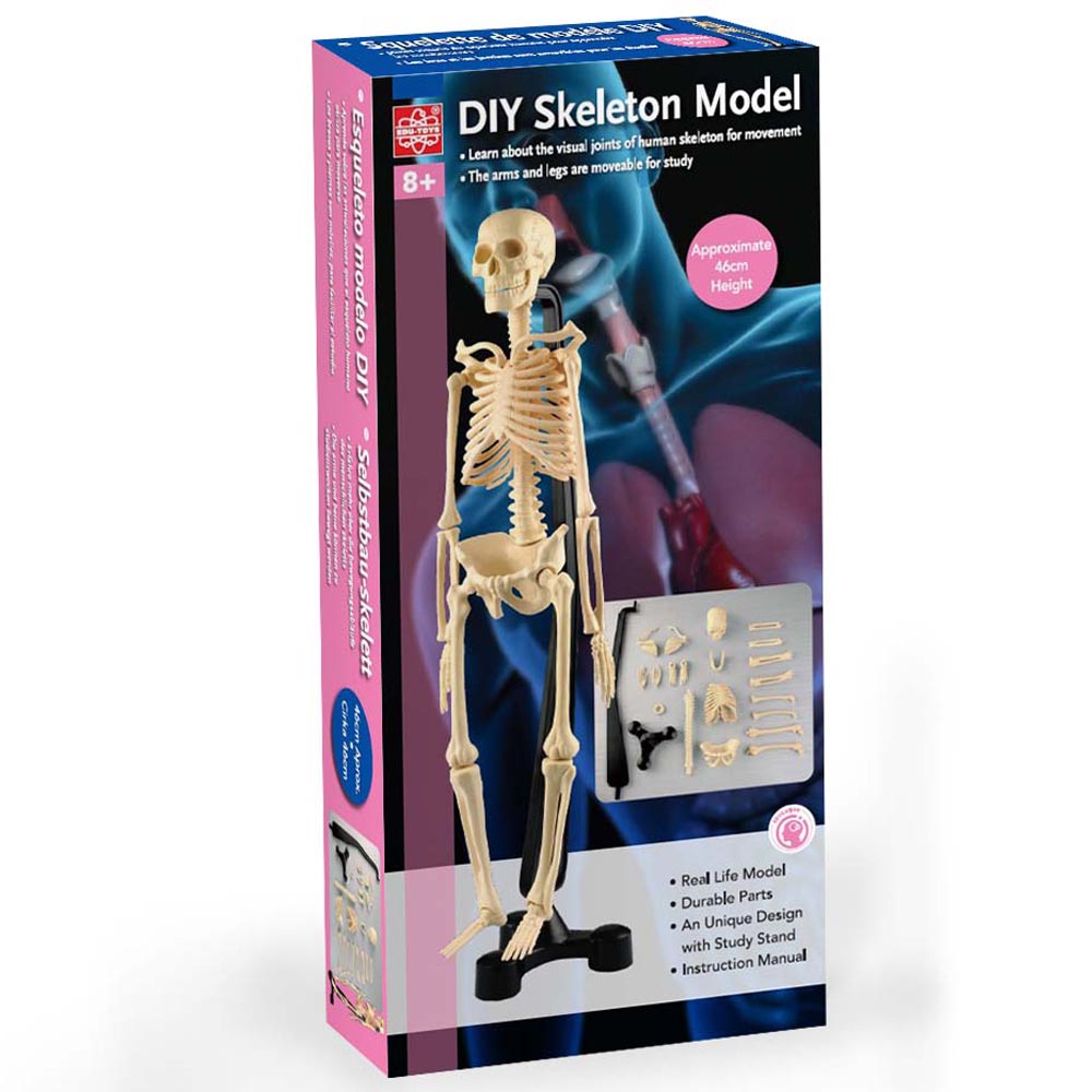 Esqueleto humano modelo de la vida real. 22 piezas resistentes y duraderas. Diseño único con soporte resistente. Manual completamente ilustrado.