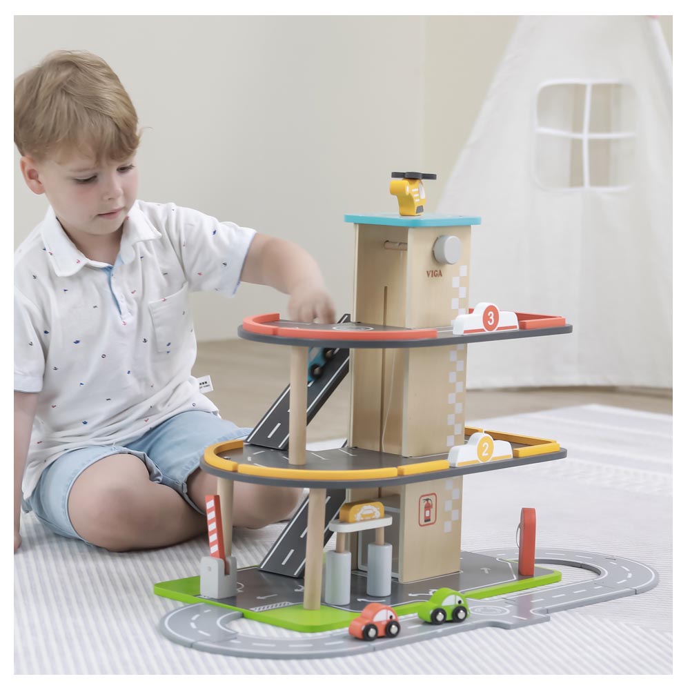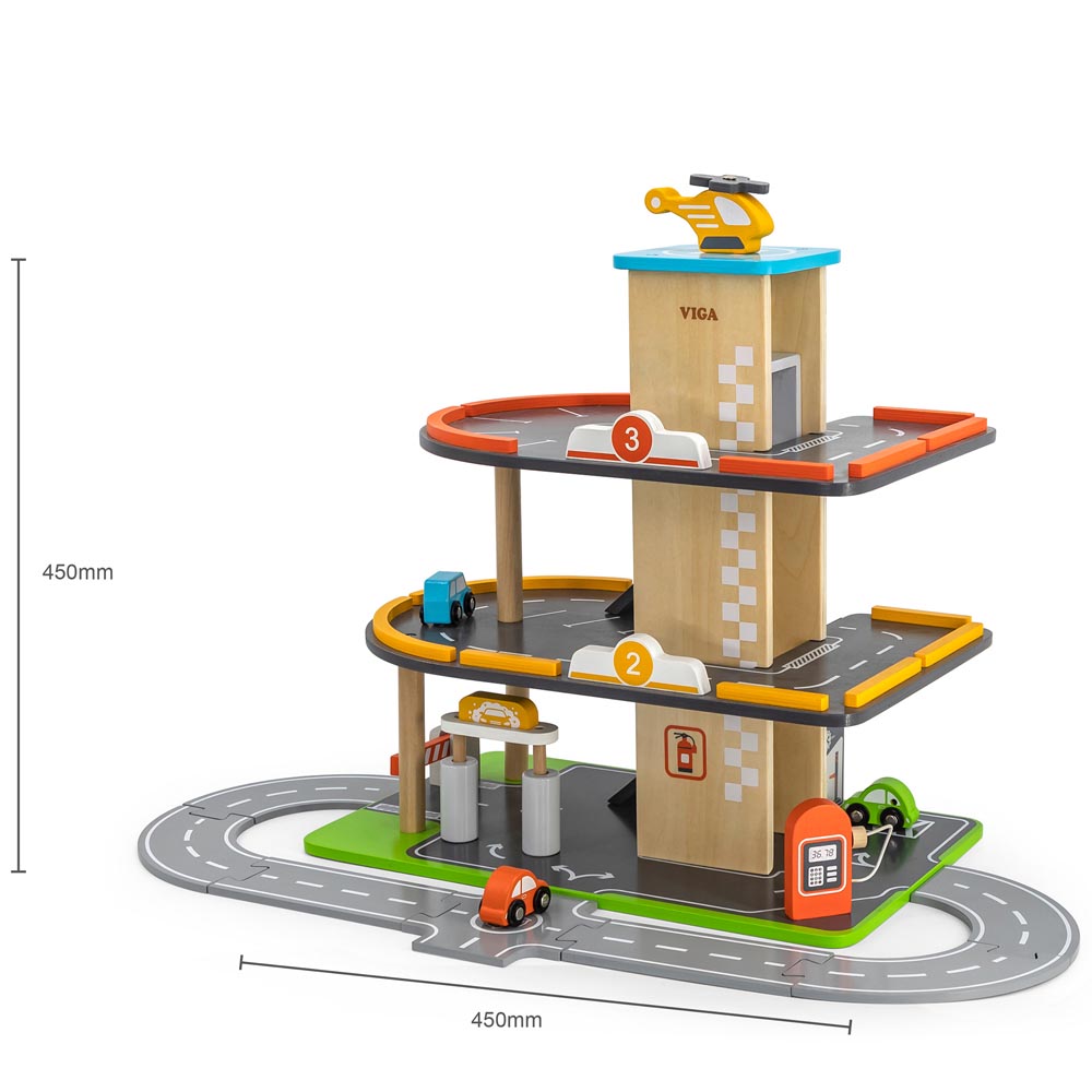 Divertida estación de autos, parking y estación de gas. Para pasar horas de diversión. Diseñado en madera con detalles coloridos, material resistente.