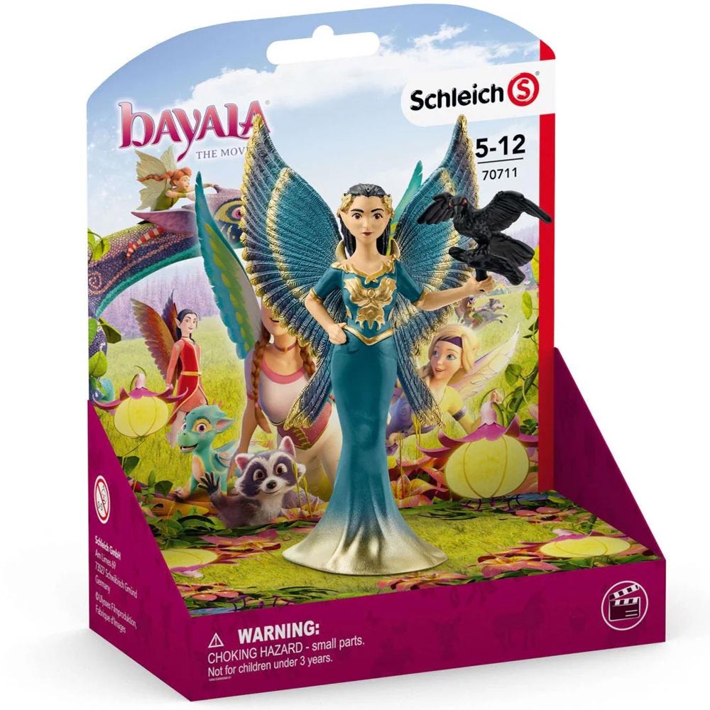 Dos estrellas de cine de Bayala® crean una gran sensación en el país de las hadas. La reina hada de las sombras, Ophira, y su cuervo Munyn tienen todo bajo control y casi se las arreglan para marchitar todas las plantas. Pero no han llegado a un acuerdo con el valiente Kuack. Disfrazado como un cuervo, el pequeño loro del hada del sol Surah ayuda a salvar el país de las hadas. Ophira y su cuervo pueden ver desde lejos el colorido y alegre festival del dragón, que reúne a todas las tribus de hadas en paz. Un día ella también será parte del reino de Bayala de nuevo. Juguete diseñado con gran detalle en plástico resistente.