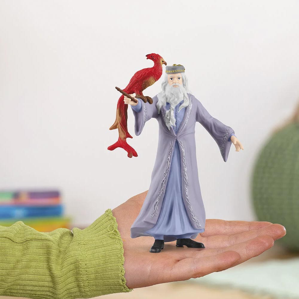 Hermosa figura de la exitosa saga de Harry Potter pintada a mano con gran detalle. Con su varita mágica en alto, su ave fénix Fawkes™ y sus grandes conocimientos, Albus Dumbledore™ es conocido como el único mago al que teme el malvado Lord Voldemort.