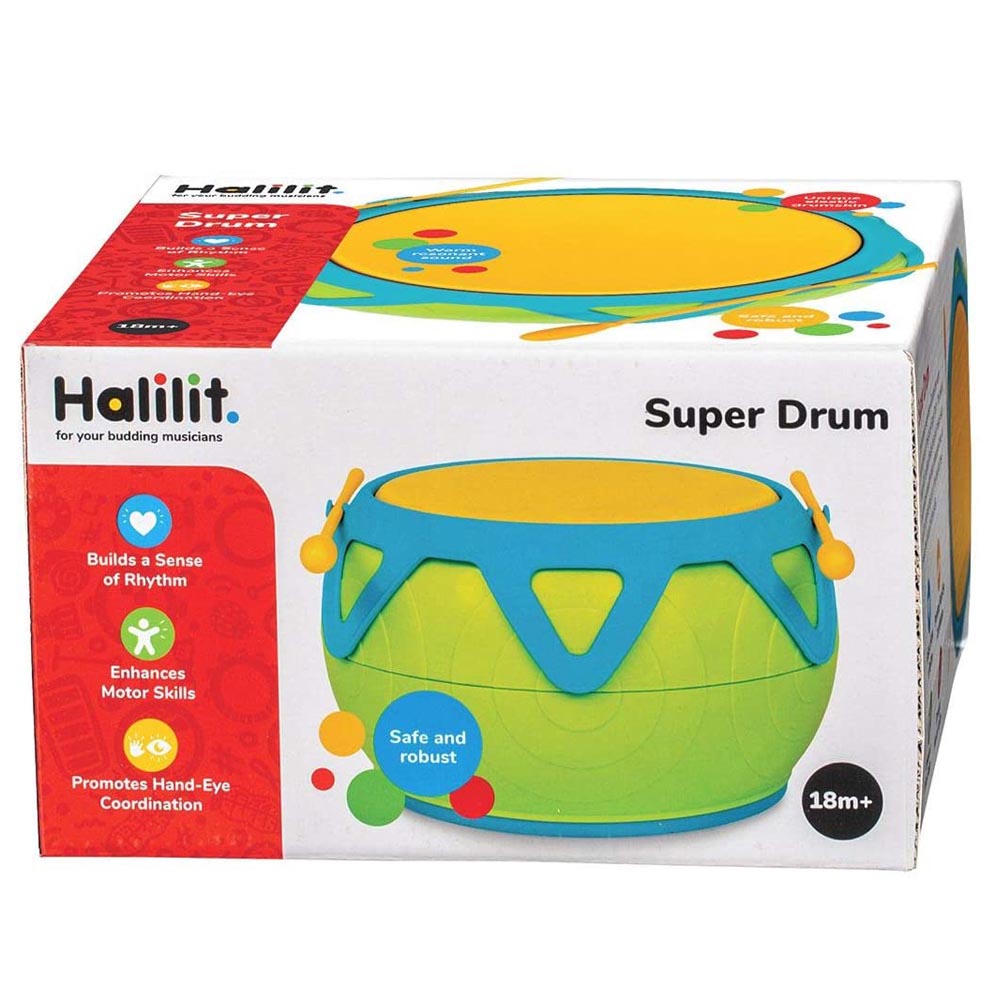 Este hermoso tambor será el favorito de los mas pequeños con su sonido especial y cálido y la suavidad de su superficie. Su diseño es exclusivo y original, la superficie elástica genera sonidos muy suaves y profesionales. Los mas pequeños se sentirán parte de la banda mientras aprenden sobre música y desarrollan su habilidades rítmicas. Con todos los productos de esta hermosa marca te invitamos a introducir a los niños en el mágico mundo de la música y el ritmo a través de una hermosa gama de juguetes musicales, diseñados y desarrollados especialmente para los más pequeños. Todos los productos Halilit cumplen con los más altos estándares de seguridad, y no hay mejor manera de fomentar el desarrollo de un niño que a través de auténticos instrumentos musicales. Estos fantásticos juguetes ofrecen infinitas oportunidades para desarrollar las habilidades de sus hijos.