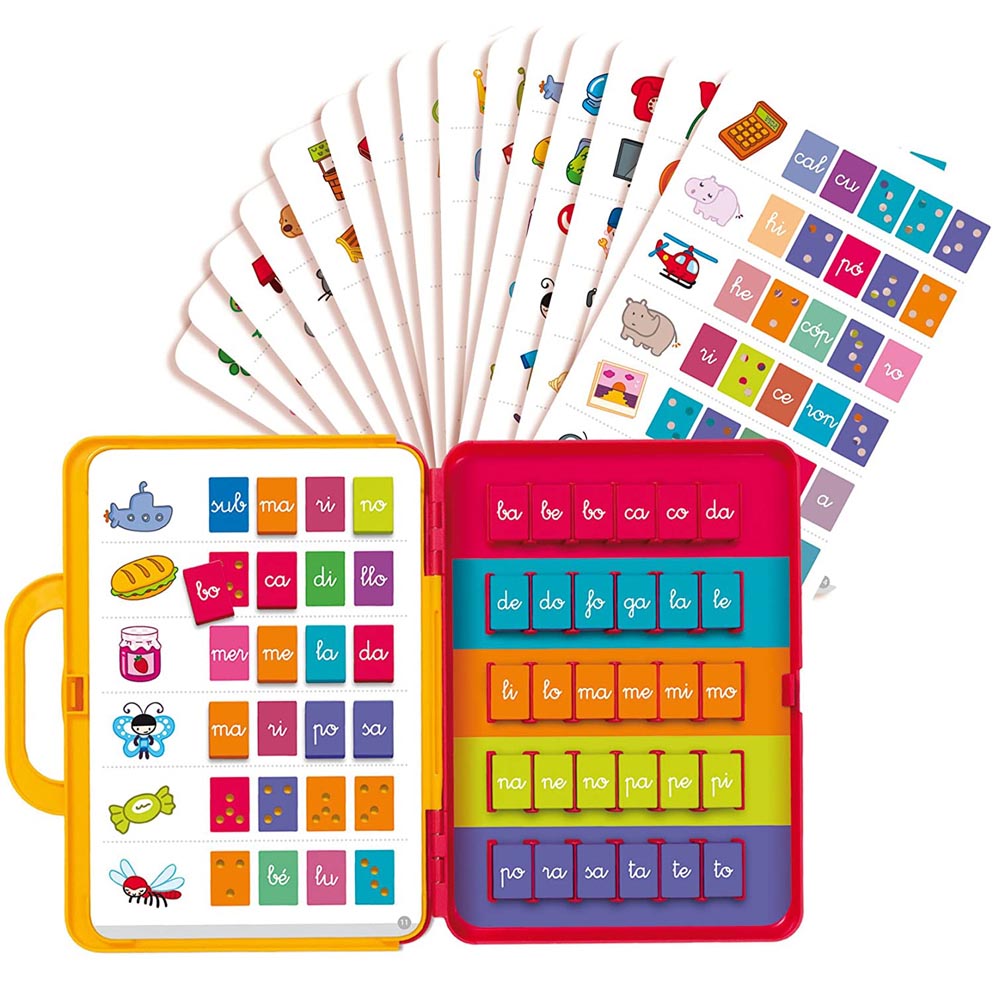Este juego educativo con un maletín que contiene 15 láminas y 90 fichas es una excelente herramienta para aprender a separar las sílabas de las palabras. Los niños pueden colocar las fichas en las láminas de manera que cada sílaba quede correctamente separada. La característica de sistema auto correctivo permite a los niños verificar de inmediato si han dado la solución correcta, lo que fomenta la práctica independiente y el aprendizaje efectivo. Es una forma interactiva y lúdica de mejorar las habilidades de separación de sílabas y lectura.