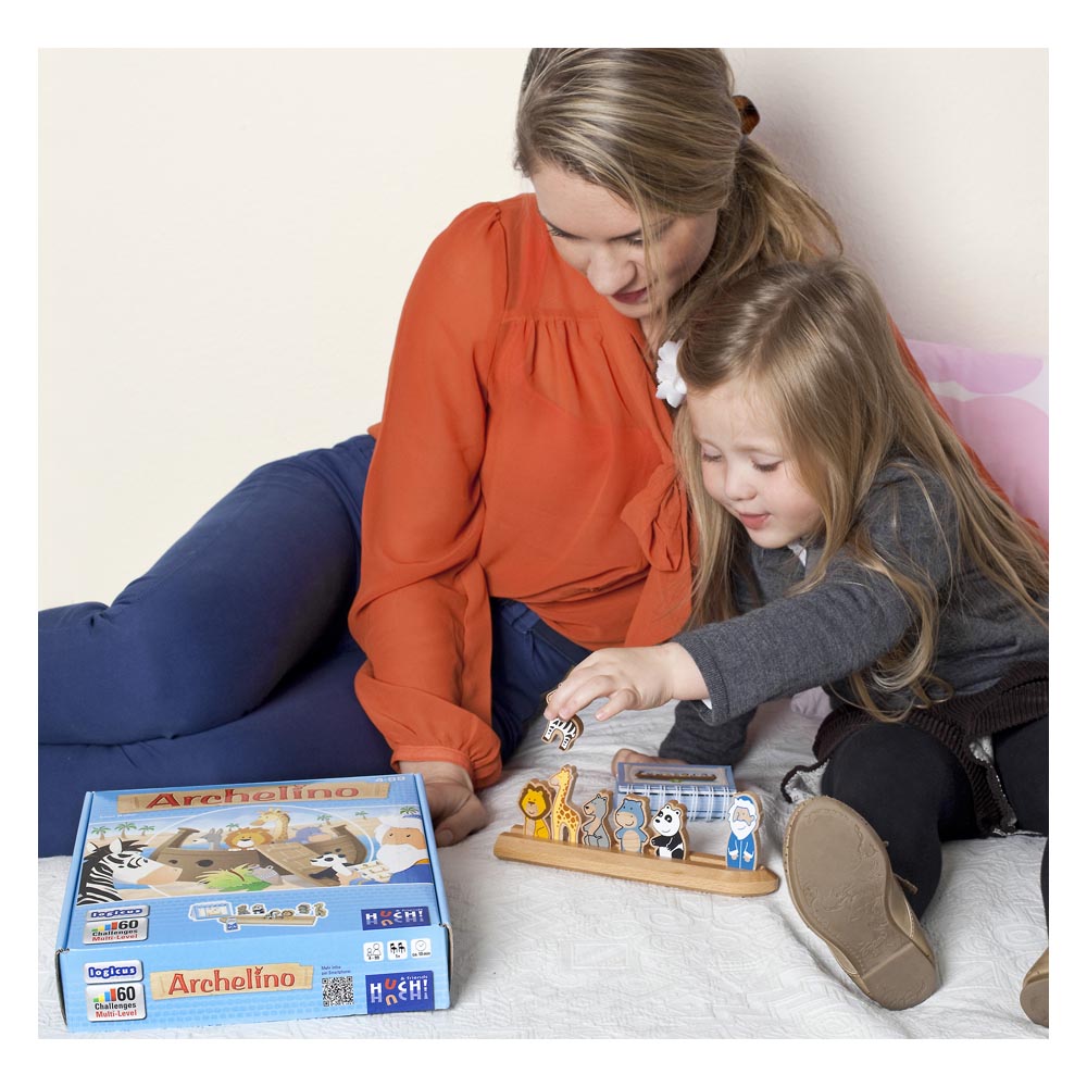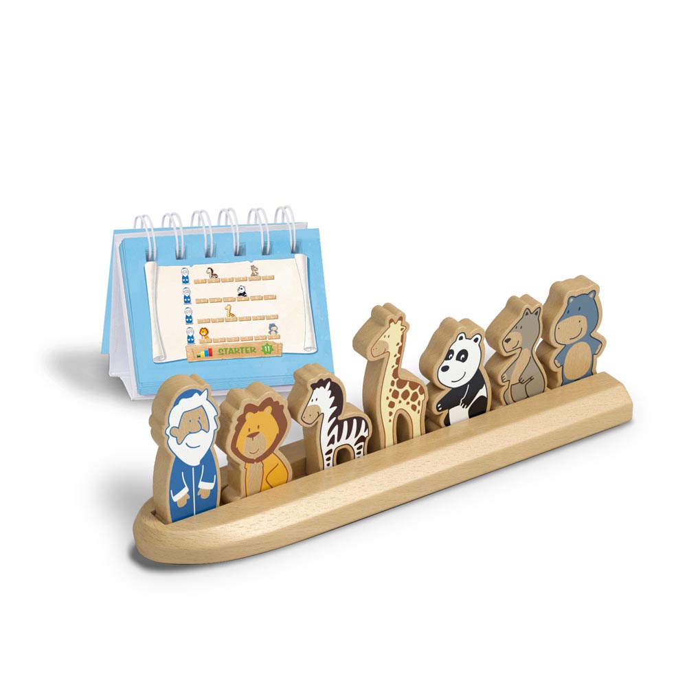 Todos los animales se reúnen en el arca de Noé para escapar del gran diluvio. ¿Pero en que orden deberían encontrar un lugar en el barco? Gracias a las sugerencias, solo hay una solución para cada una de las 60 tareas. Pero encontrarla puede ser complicado. Entrena la combinación correcta y la imaginación espacial. Equipos de alta calidad con grandes piezas de madera. De 1 a 10 jugadores. 10 minutos de juego.