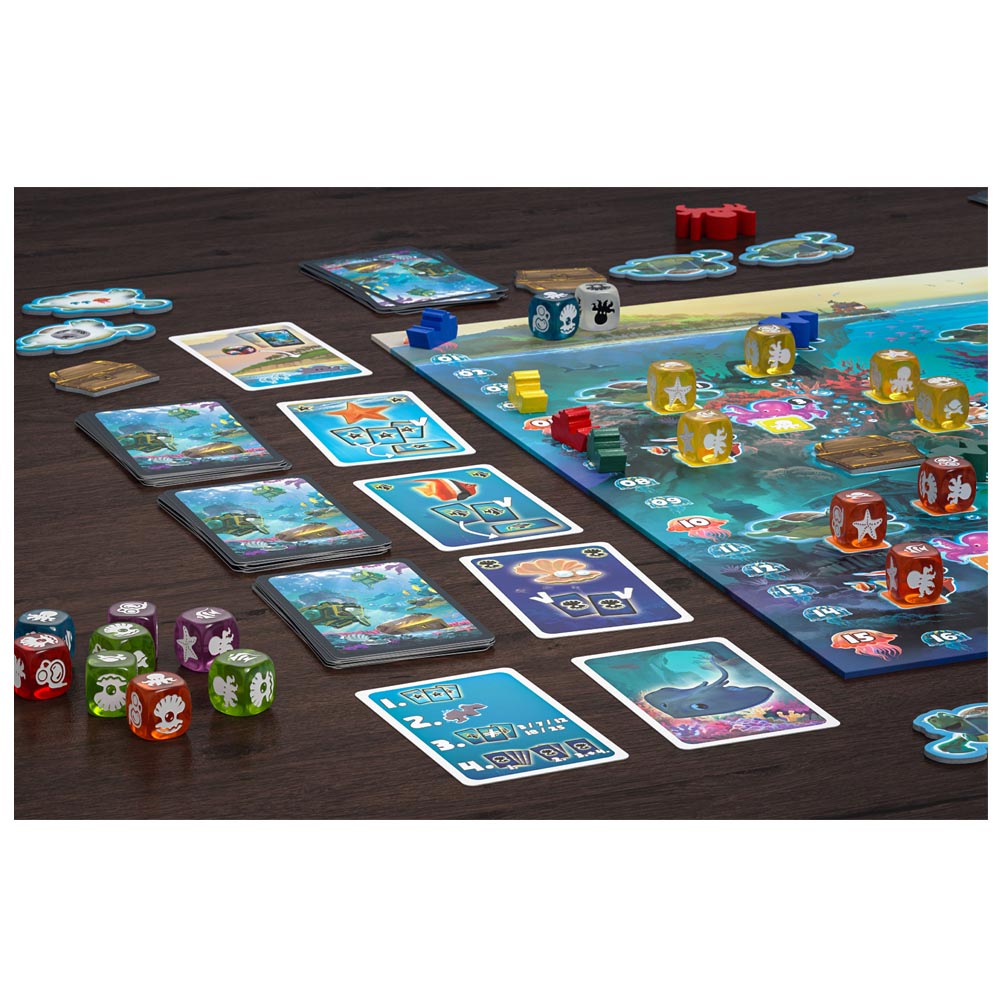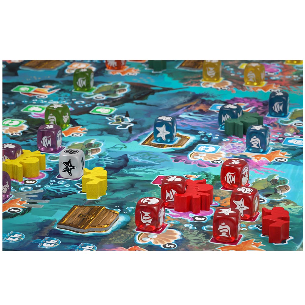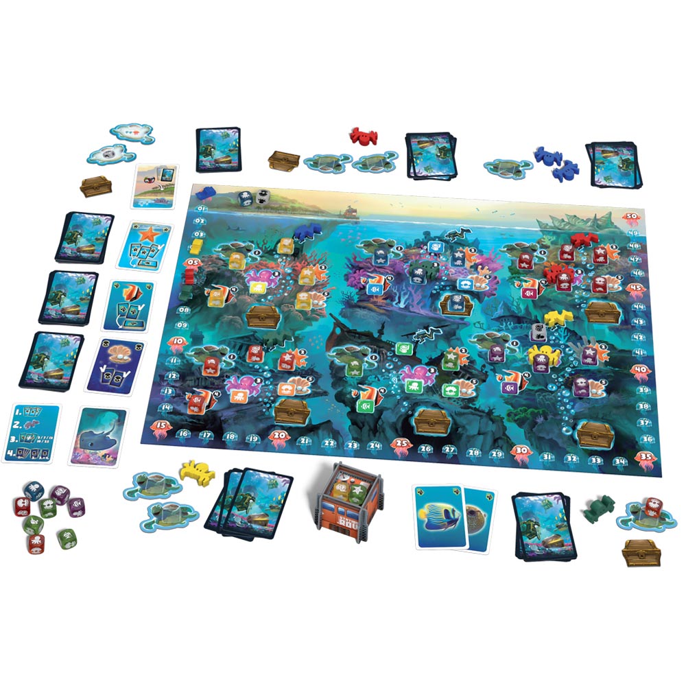 Los coloridos arrecifes que rodean la antigua isla pirata de Coralia ofrecen un paraíso para científicos de todo el mundo que exploran el mundo submarino con sus robots buceadores y trabajan en la conservación de los arrecifes de coral. Envían vehículos operados a distancia para encontrar especies específicas de animales. Al mismo tiempo, sin embargo, también mantienen los ojos abiertos para ver si se puede rastrear uno u otro tesoro pirata hundido. Algunas perlas también son bienvenidas para terminar no solo siendo un investigador respetado, sino también rico… Este juego de colocación de dados se trata de conseguir la mayor cantidad de puntos con un poco de suerte y las decisiones correctas, una aventura para ¡toda la familia! recomendado a partir de 10 hasta 99 años. Para jugar de 2 a 4 jugadores, duración aproximada de 35 minutos.