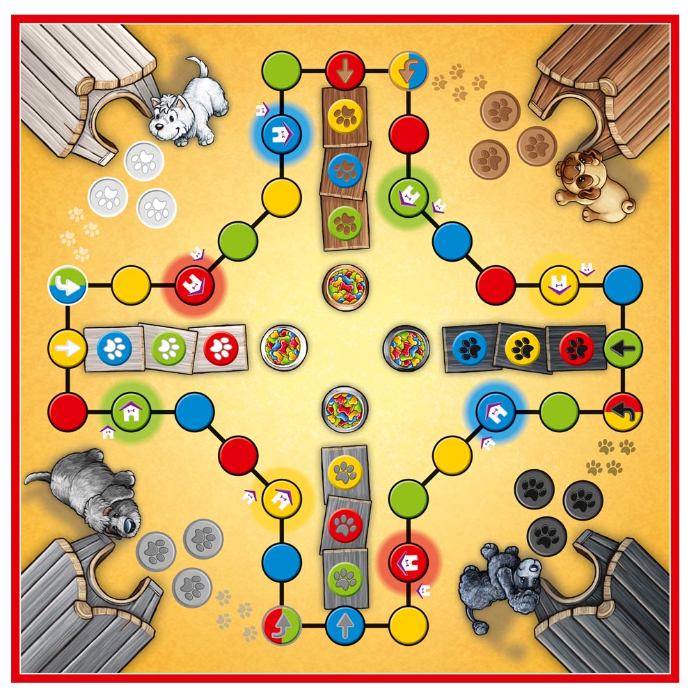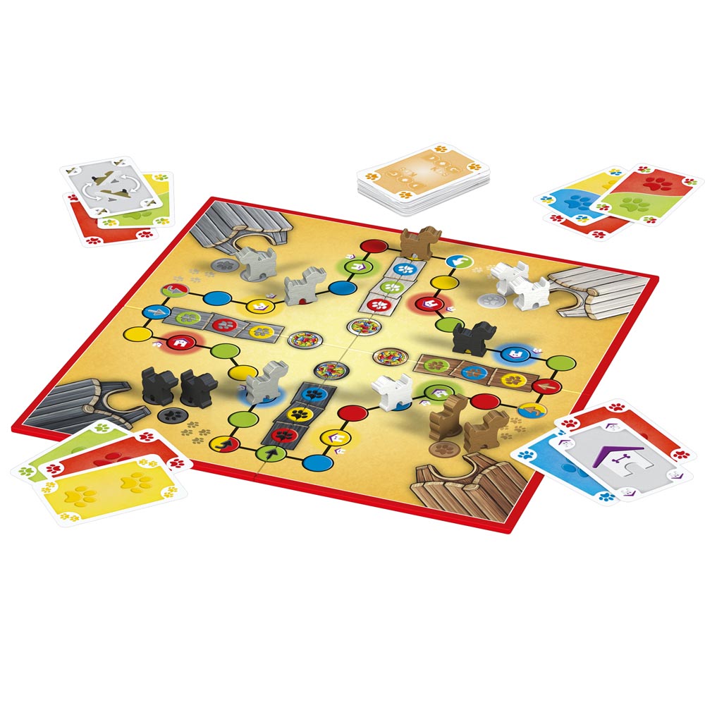 Parece un Ludo, pero es Dog, ahora en la versión para los más pequeños de la casa. Dos personas siempre juegan juntas formando un equipo. Todos los jugadores intentan mover sus propias piezas desde la casa hasta el área objetivo lo más rápido posible. Las piezas se mueven mediante cartas, no es posible ganar solo; habrá que ayudarse dentro del equipo para ser el ganador del juego. El equipo que haya colocado primero todas sus 8 piezas en el área objetivo gana. Para pasar horas de diversión.