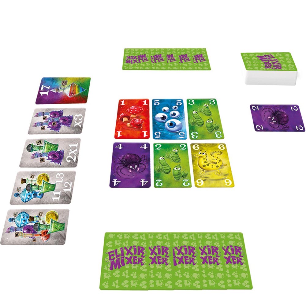 Cada año los mejores magos y magas rivalizan para ver quién hace el elixir más potente durante el «festival de magia y hechicería». ¿Quieres ser tú el ganador este año? Para conseguirlo deberás intercambiar y mezclar inteligentemente suficientes elixires para sumar 8 puntos. Intercambia astutamente tus ingredientes, ya que elaborar los elixires adecuados te ayudará a obtener puntos de bonificación adicionales. Divertido juego familiar rápido de jugar y con instrucciones sencillas. Para llevar a cualquier lado. Edad recomendada: a partir de 8 años. La caja incluye: 112 cartas (72 cartas de ingredientes + 30 cartas elixir + 10 cartas de bonificación) e instrucciones de juego.