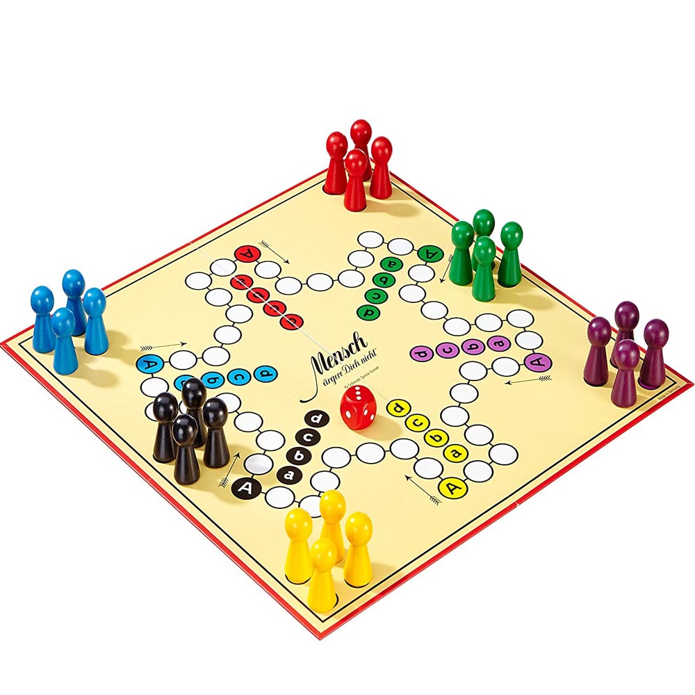Este divertido juego de mesa dará diversión a grandes y chicos. Un juego clásico en Alemania, desarrollado ahora con figuras extra grandes y tablero de madera. Para jugar de 2 a 6 jugadores. Edad recomendada a partir de 6 años. Incluye un tablero de juego para 6 jugadores, figuras de madera extra grandes y dados.