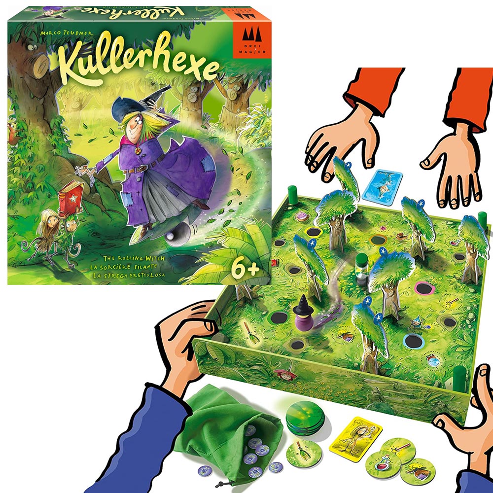 Dirige a la bruja rodante hacia los objetos que está buscando. El jugador que colecciona la mayoría de objetos y, por lo tanto, la mayoría de las fichas de bayas, ¡gana el juego! Debes jugar hasta que la última estrella haya sido puesta en uno de los árboles. Ahora mira para ver quién ha reunido la mayor cantidad de fichas de bayas en su cueva de gnomo. Para hacerlo, retira el tablero del juego de la caja. ¡El jugador con más bayas gana el juego!
