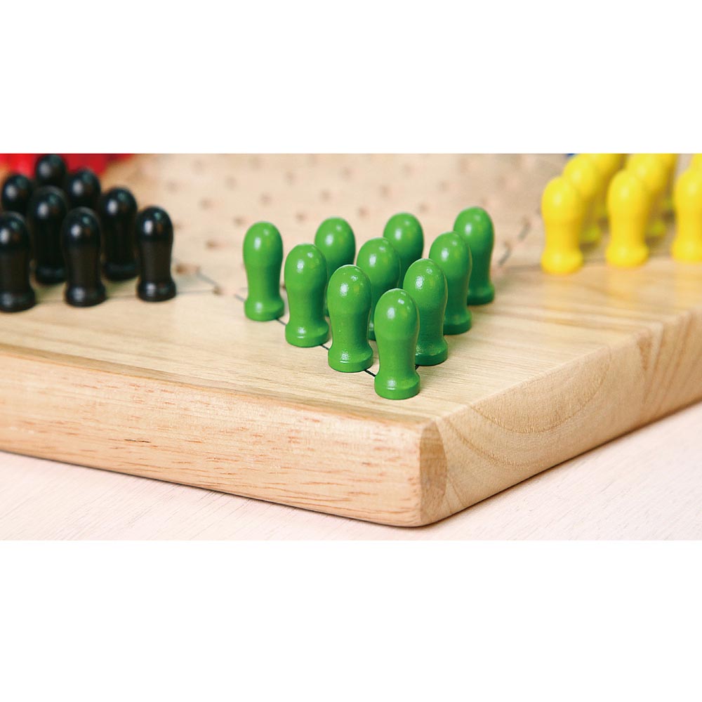 Tablero chino de madera. De gran calidad y diseño. Incluye tablero de madera con 60 tarugos de juego en 6 colores diferentes.