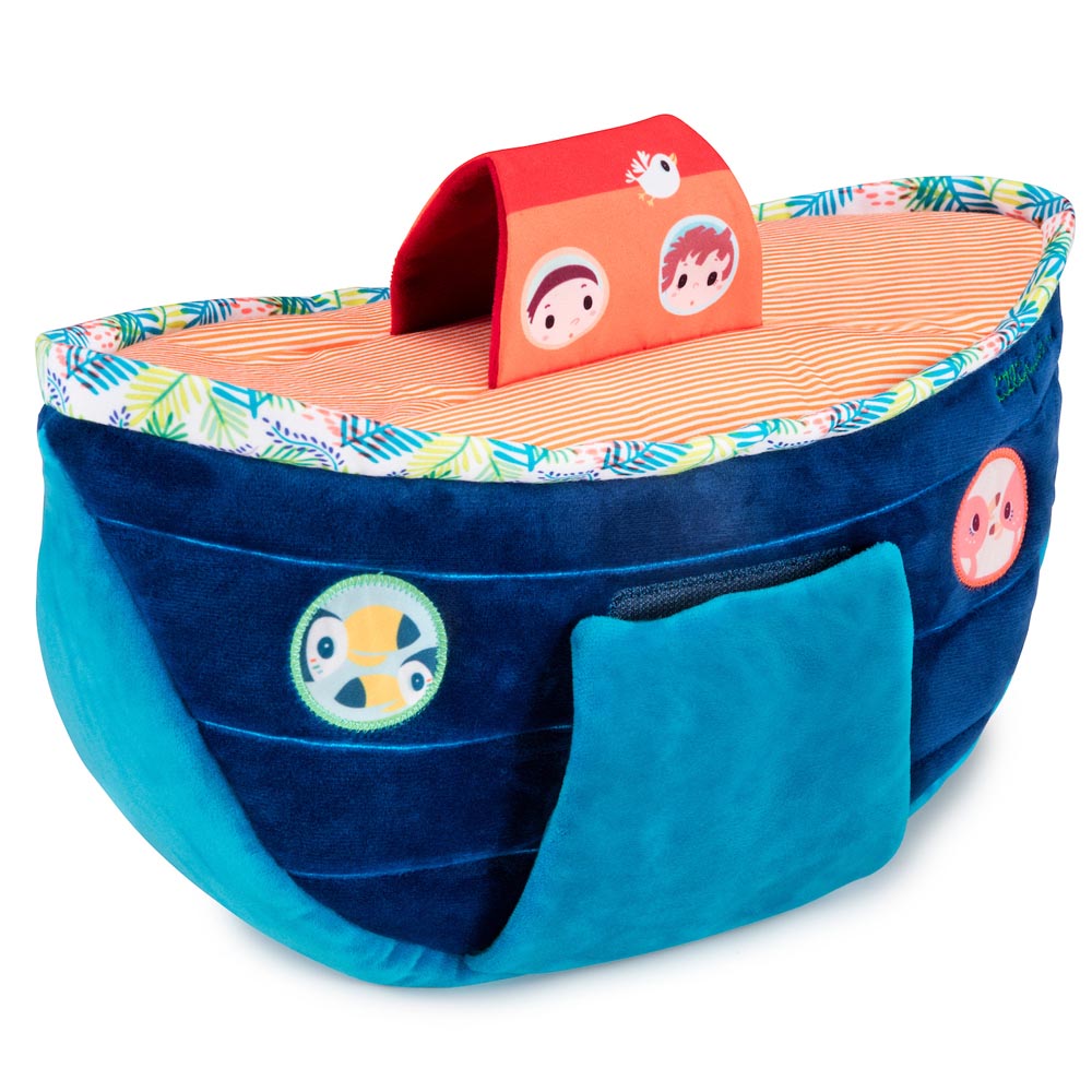¡Los pequeños aventureros están de suerte! Deja que tu bebé juegue con nuestros famosos personajes, que vienen por parejas para subir al arca. Observa cómo los niños inventan historias sobre los animales e imaginan el mundo a su antojo. El arca es fácil de llevar gracias a su asa y es perfecta para albergar a todos los animales. Incluye 10 animales.
