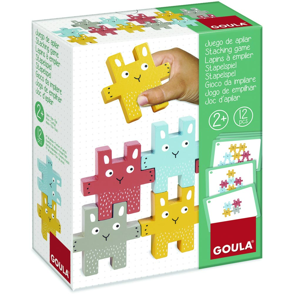 Divertido juego de apilado de madera con conejitos de diferentes colores. Puedes apilar los 12 conejitos de múltiples maneras. El juego incluye 5 cartas de ejemplos impresas por ambas caras con dificultad progresiva. Puedes jugar solo o con otros niños o adultos. El juego contiene 12 conejitos de madera en 4 colores, 5 tarjetas impresas por ambas caras y una guía pedagógica.