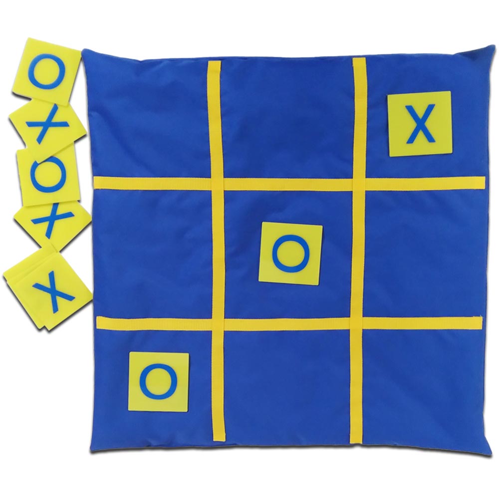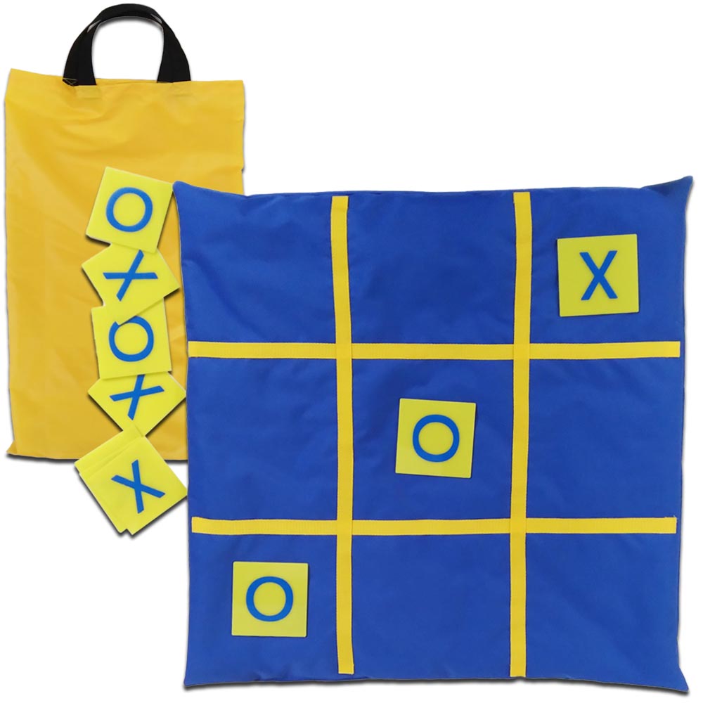 1 Juego de el Gato para jugar en el piso de tamaño grande de 68 x 68 cm. Con 10 piezas de acrílico plana impresas con una X y O de 10 x 10 cm. Con Bolsa para guardar.