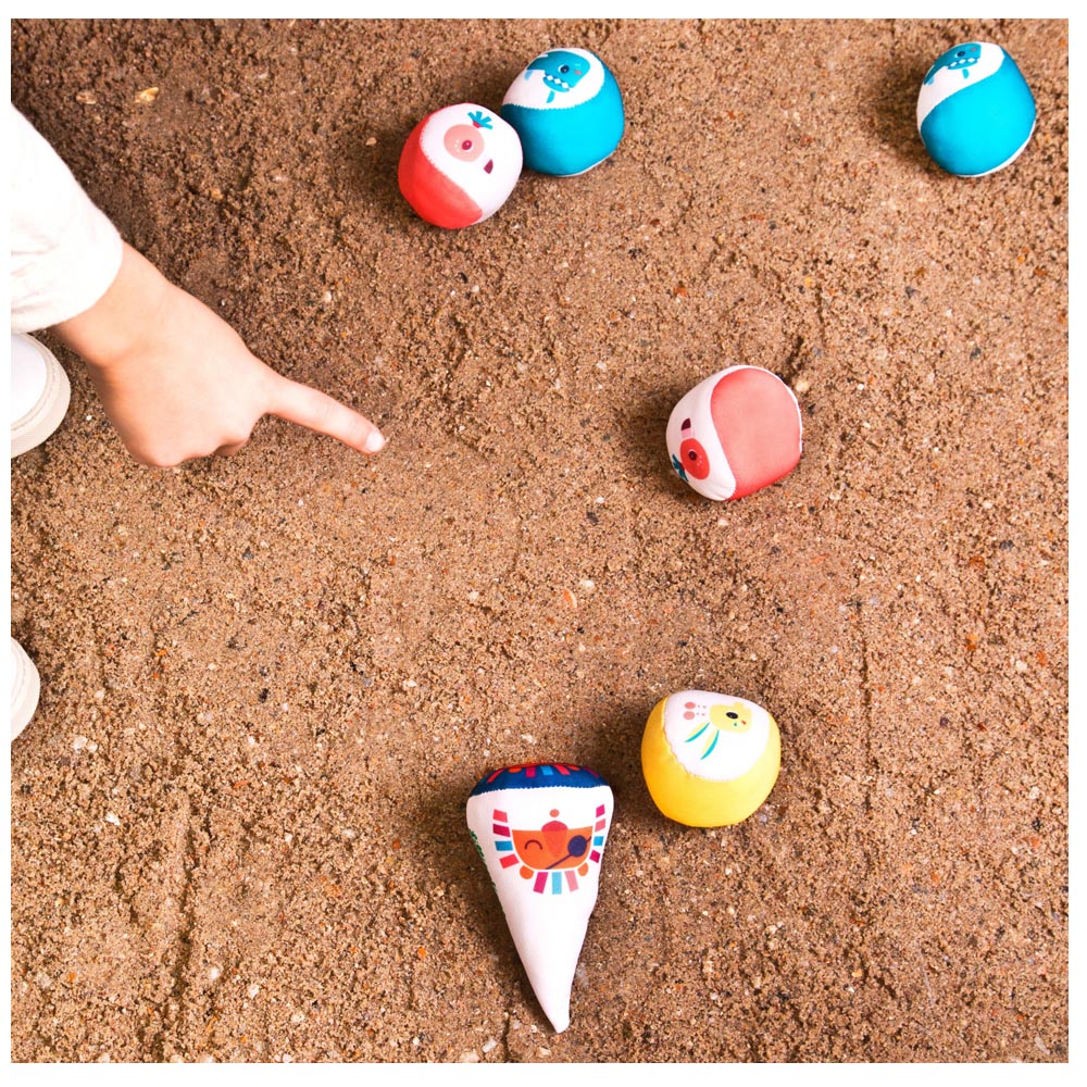 Juega a la petanca con tus amigos con este fantástico set de Lilliputiens. Haz 4 equipos y que alguien al azar lance el cono. Después cada equipo tendrá 2 oportunidades para lanzar las bolas lo más cerca del cono posible, pero ¡cuidado! los rivales pueden hacer que tus bolas se vayan lejos golpeándolas. Gana el equipo o la persona que más cerca haya lanzado las dos bolas. Divertido juego diseñado en material suave y resistente.